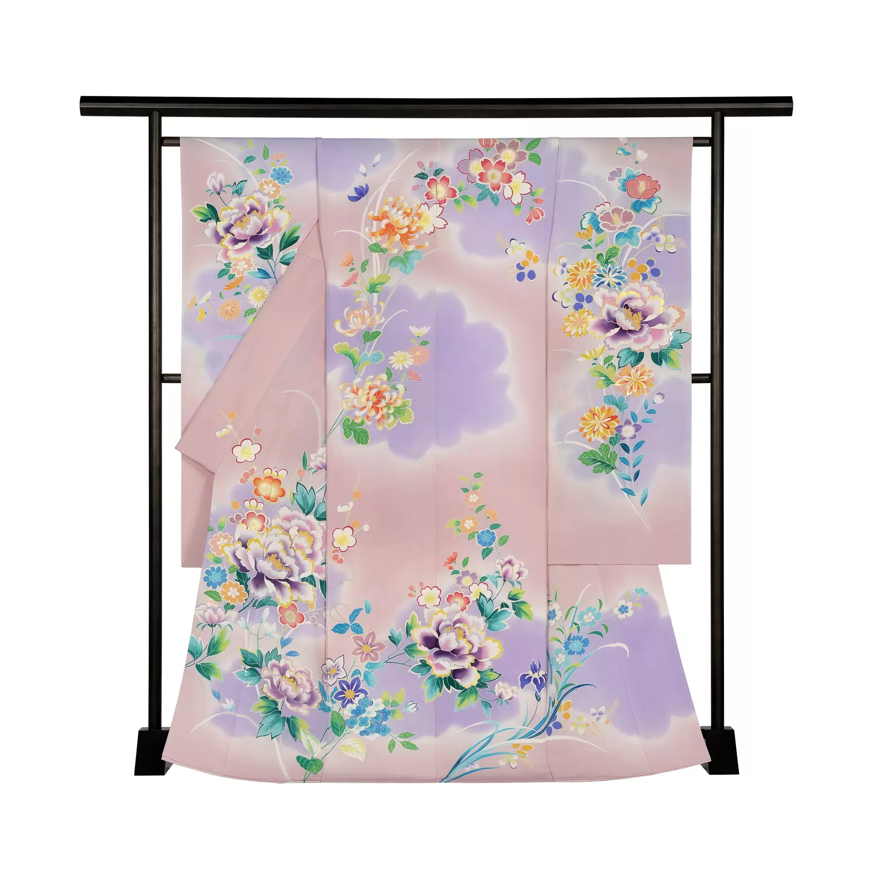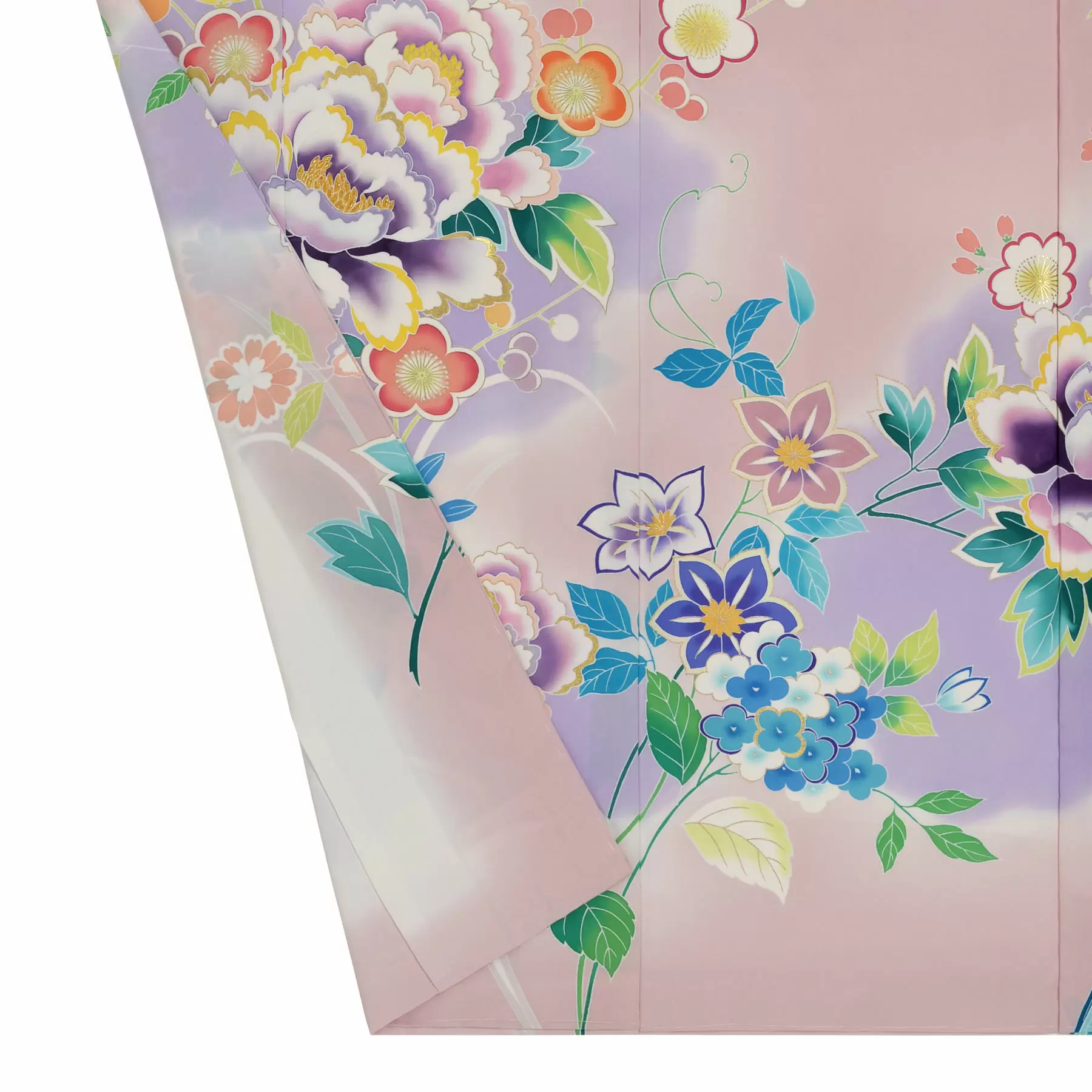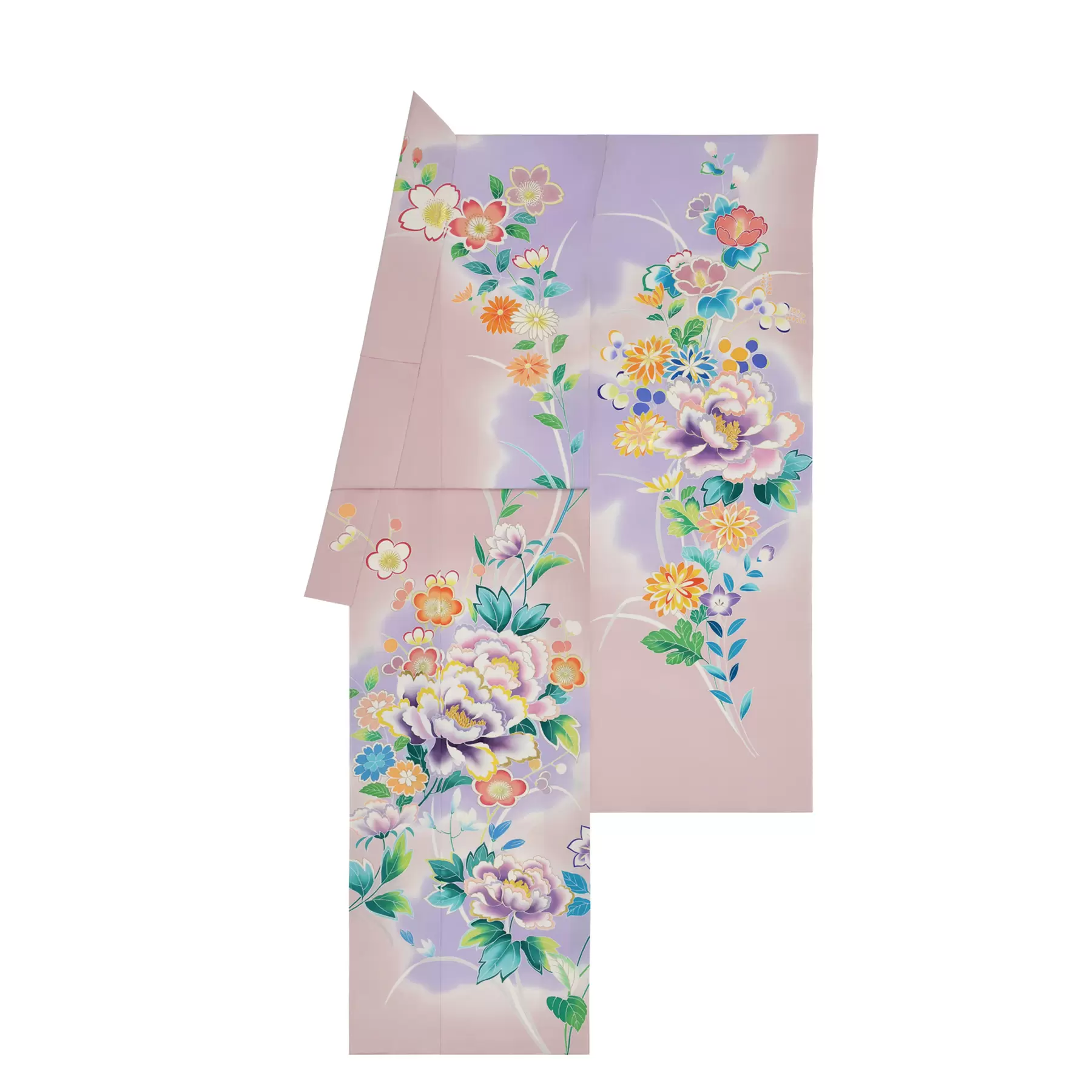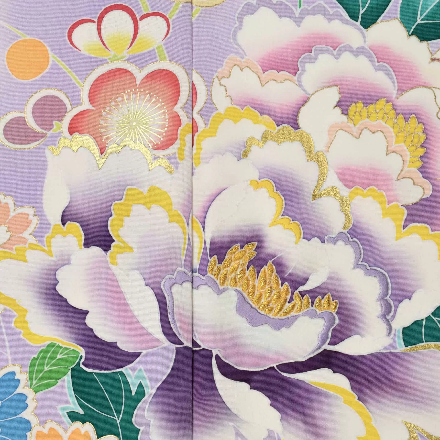 伝統的な古典柄をベースに、デザインや色彩は新鮮な感覚で、現代の女性を瑞々しく装う千總の振袖。晴れの日の心を華やかに彩ることを願って染めています。