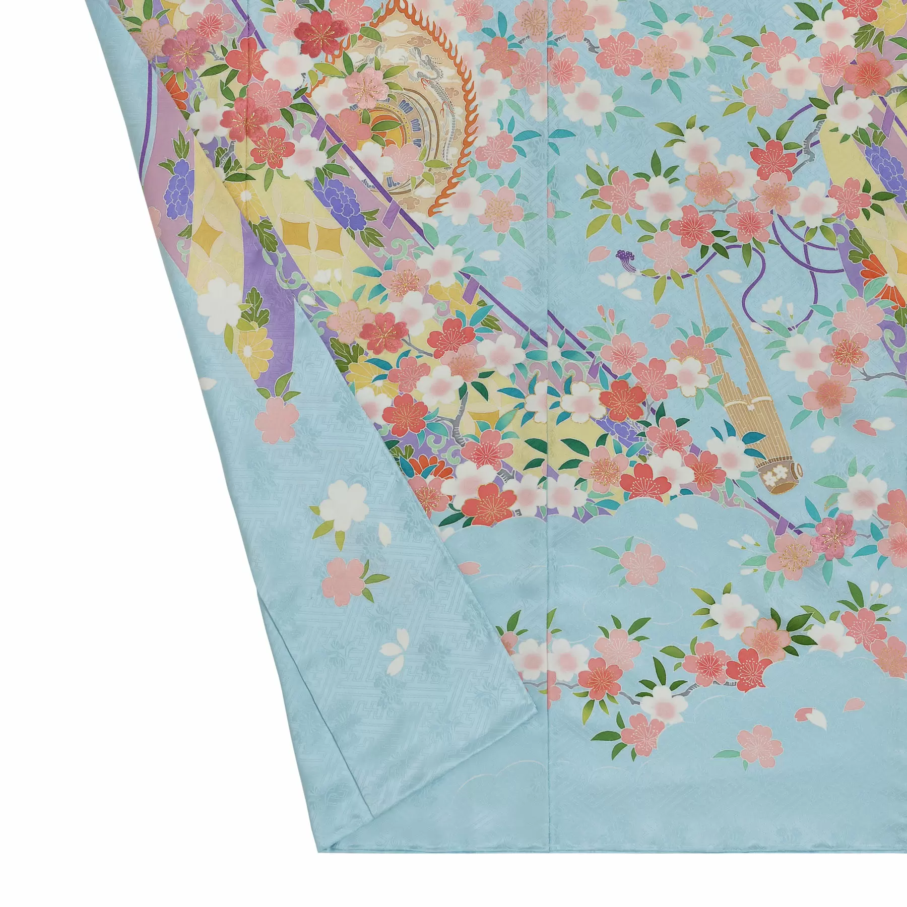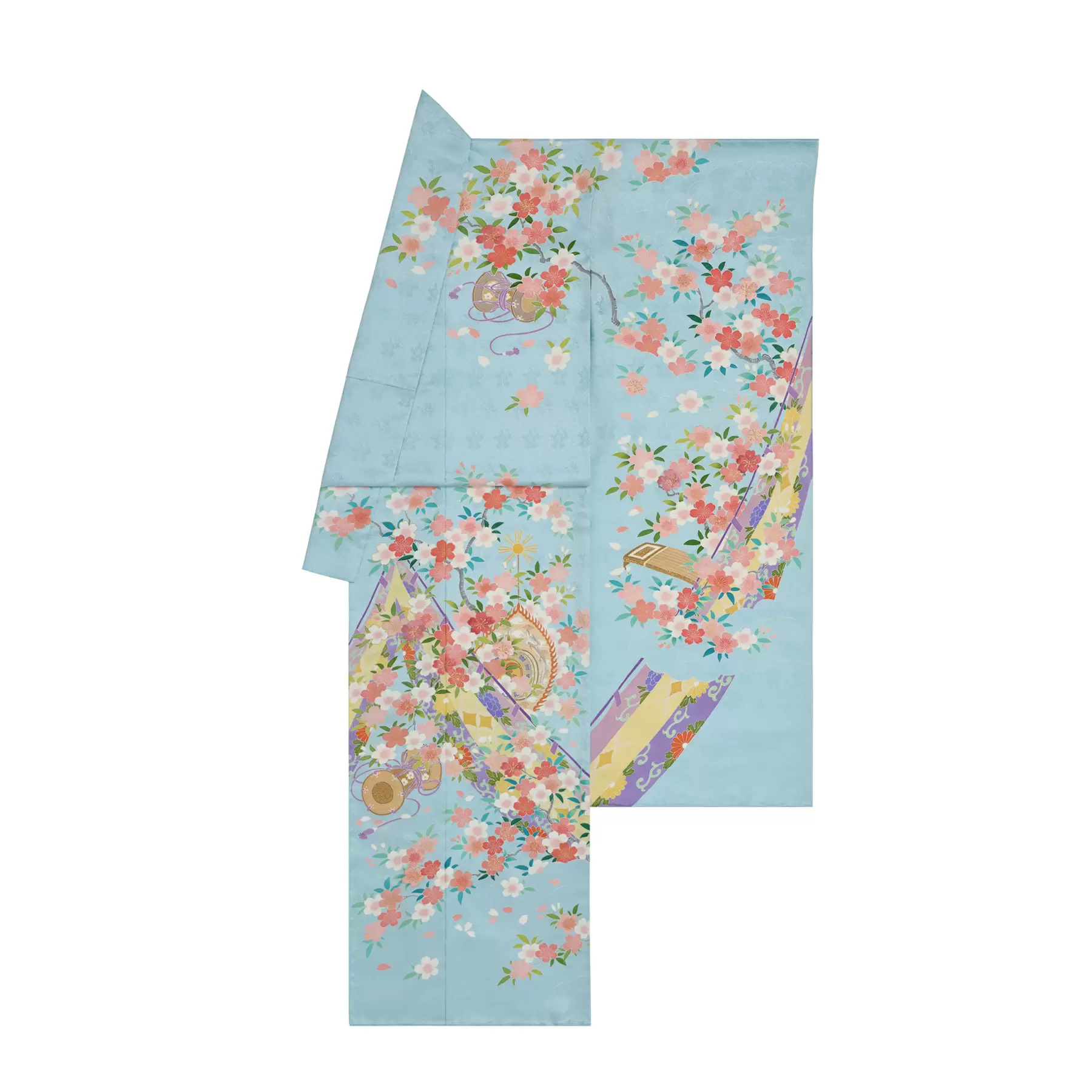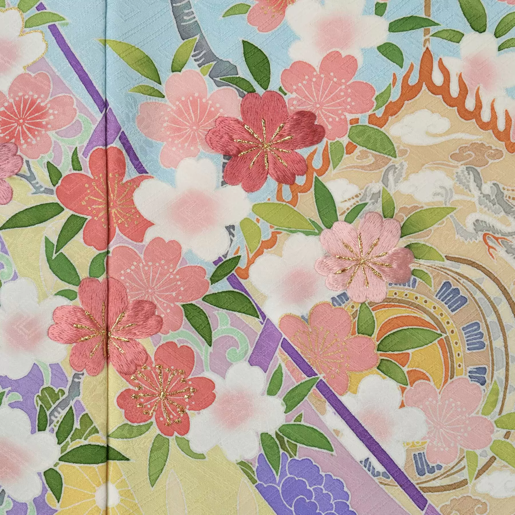 伝統的な古典柄をベースに、デザインや色彩は新鮮な感覚で、現代の女性を瑞々しく装う千總の振袖。晴れの日の心を華やかに彩ることを願って染めています。