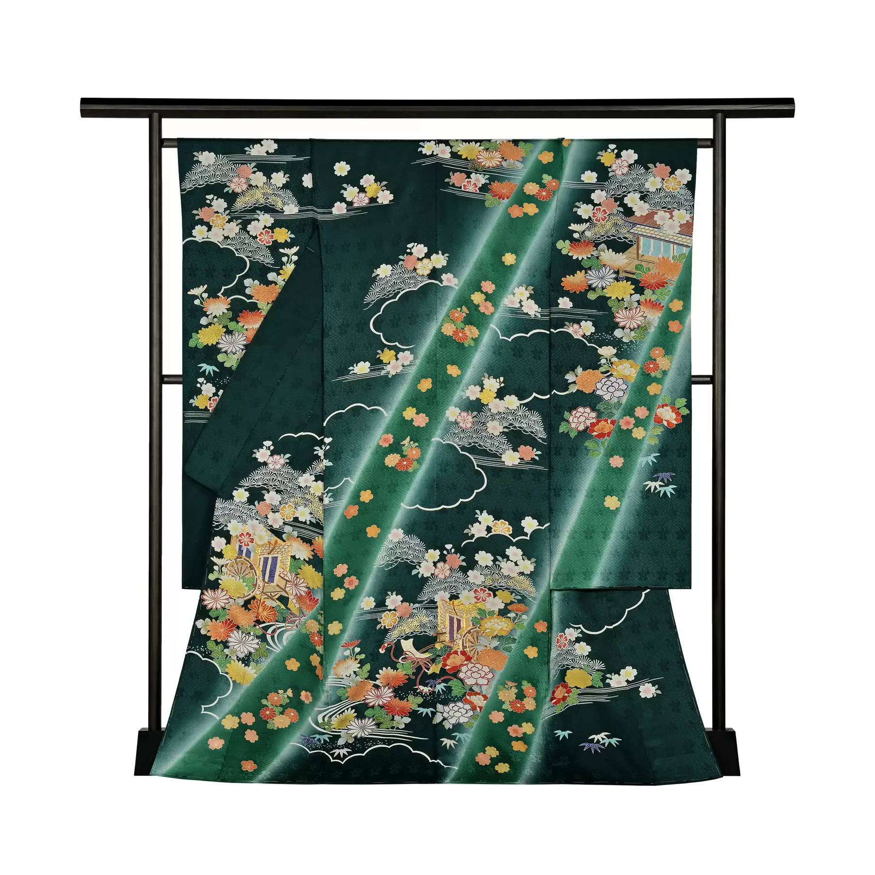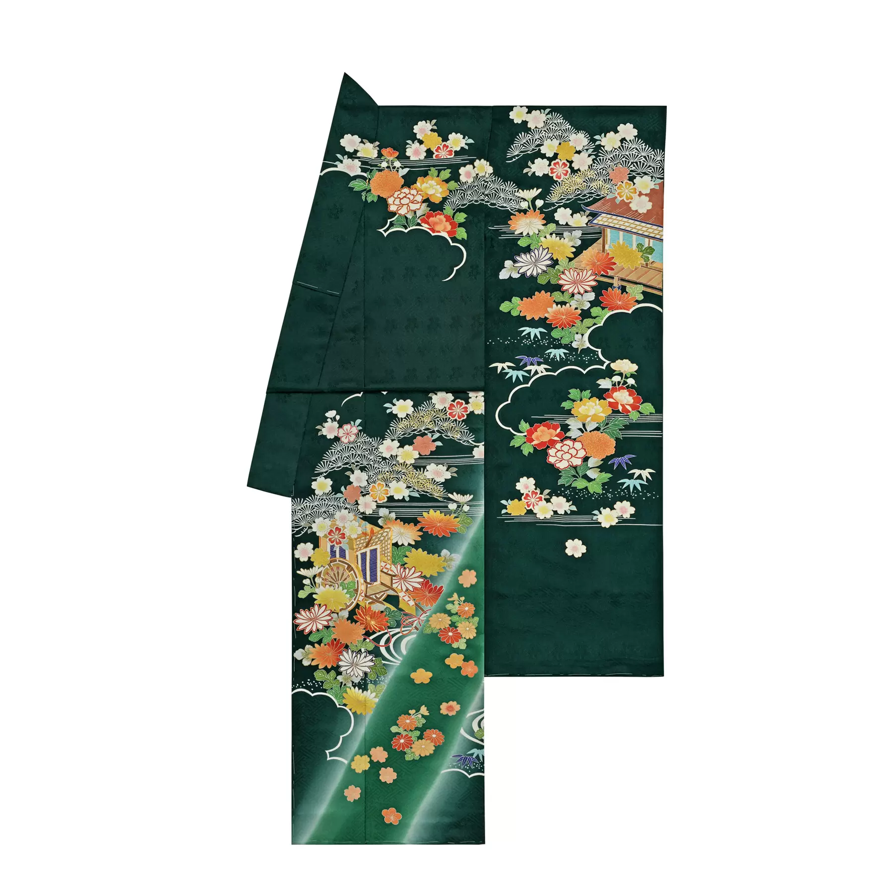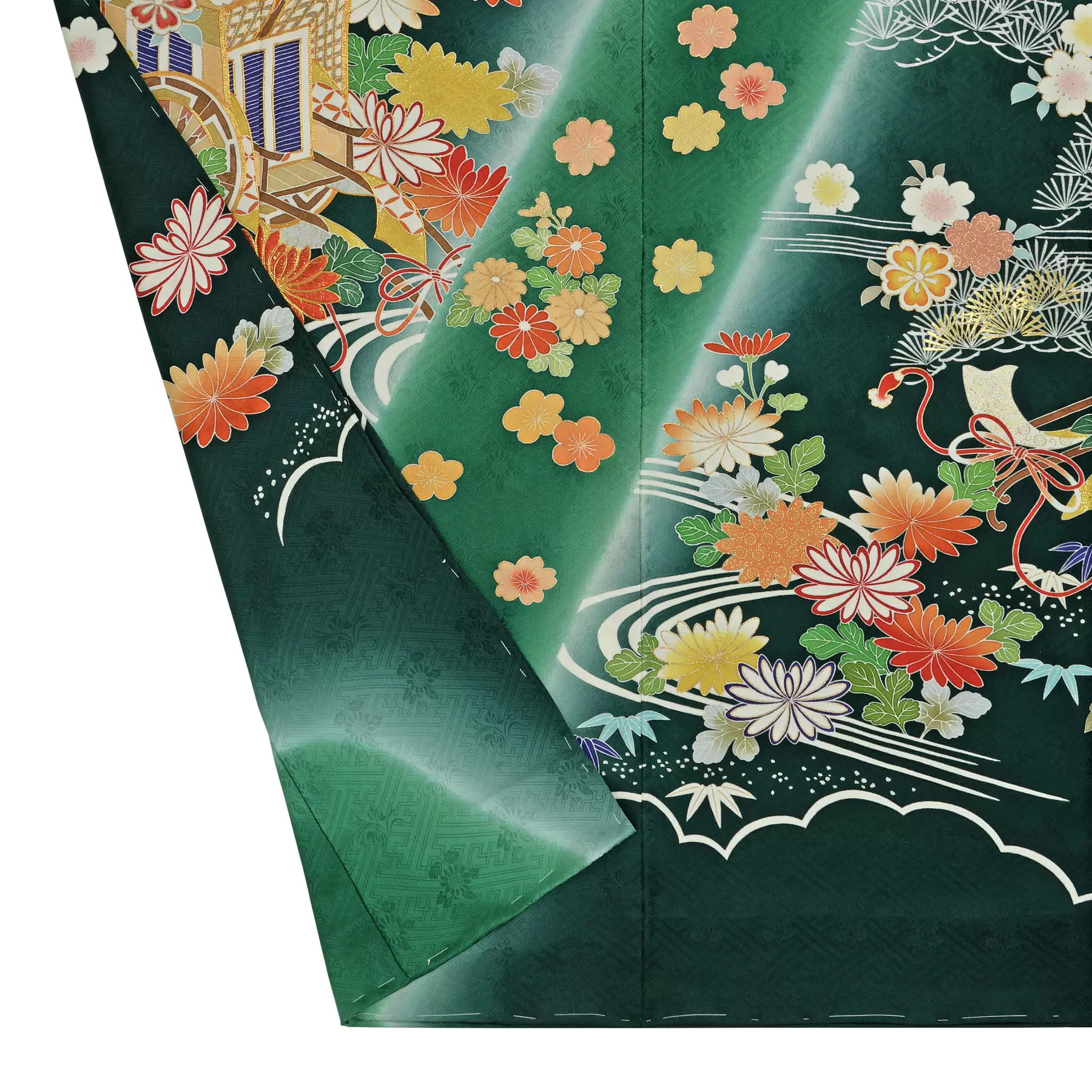 伝統的な古典柄をベースに、デザインや色彩は新鮮な感覚で、現代の女性を瑞々しく装う千總の振袖。晴れの日の心を華やかに彩ることを願って染めています。