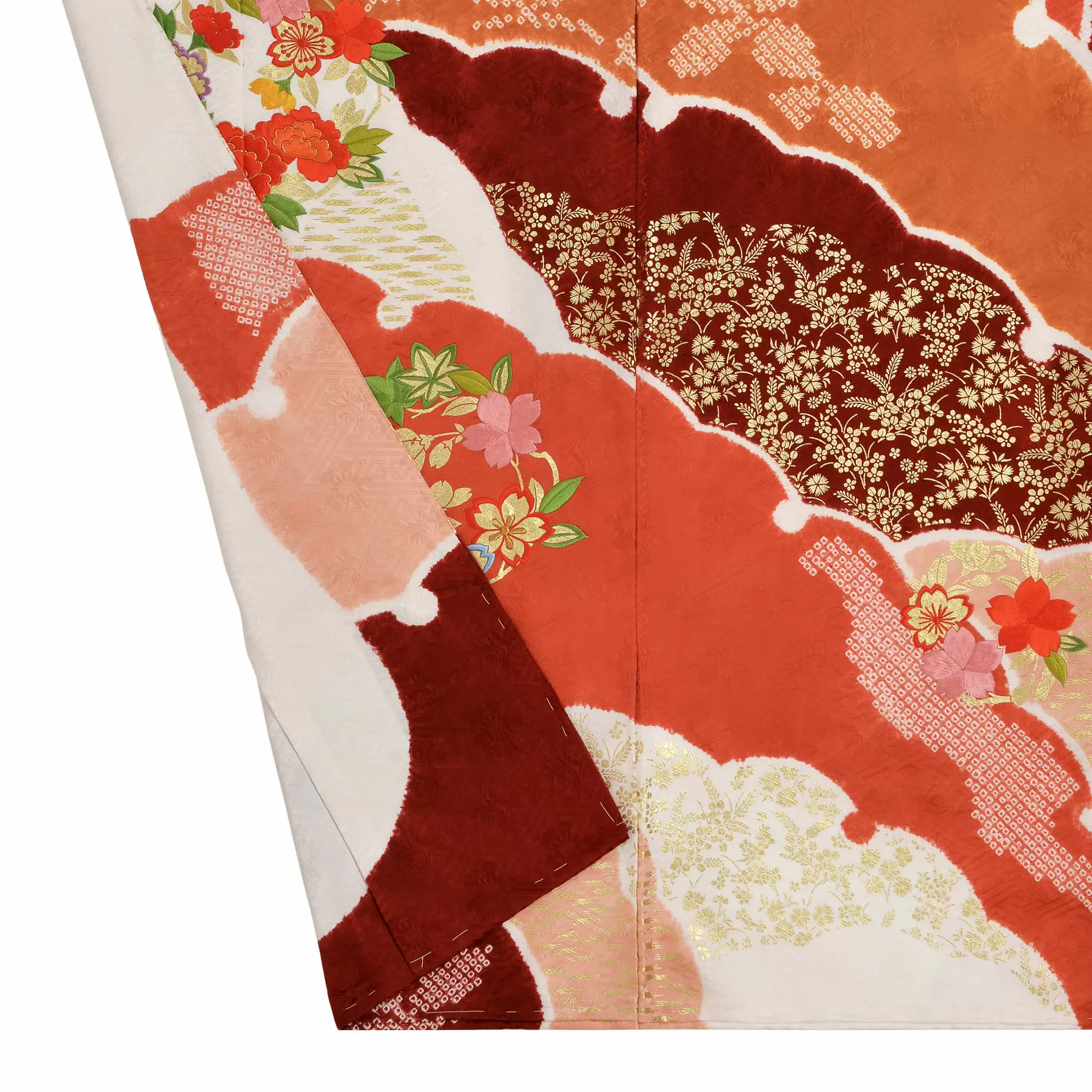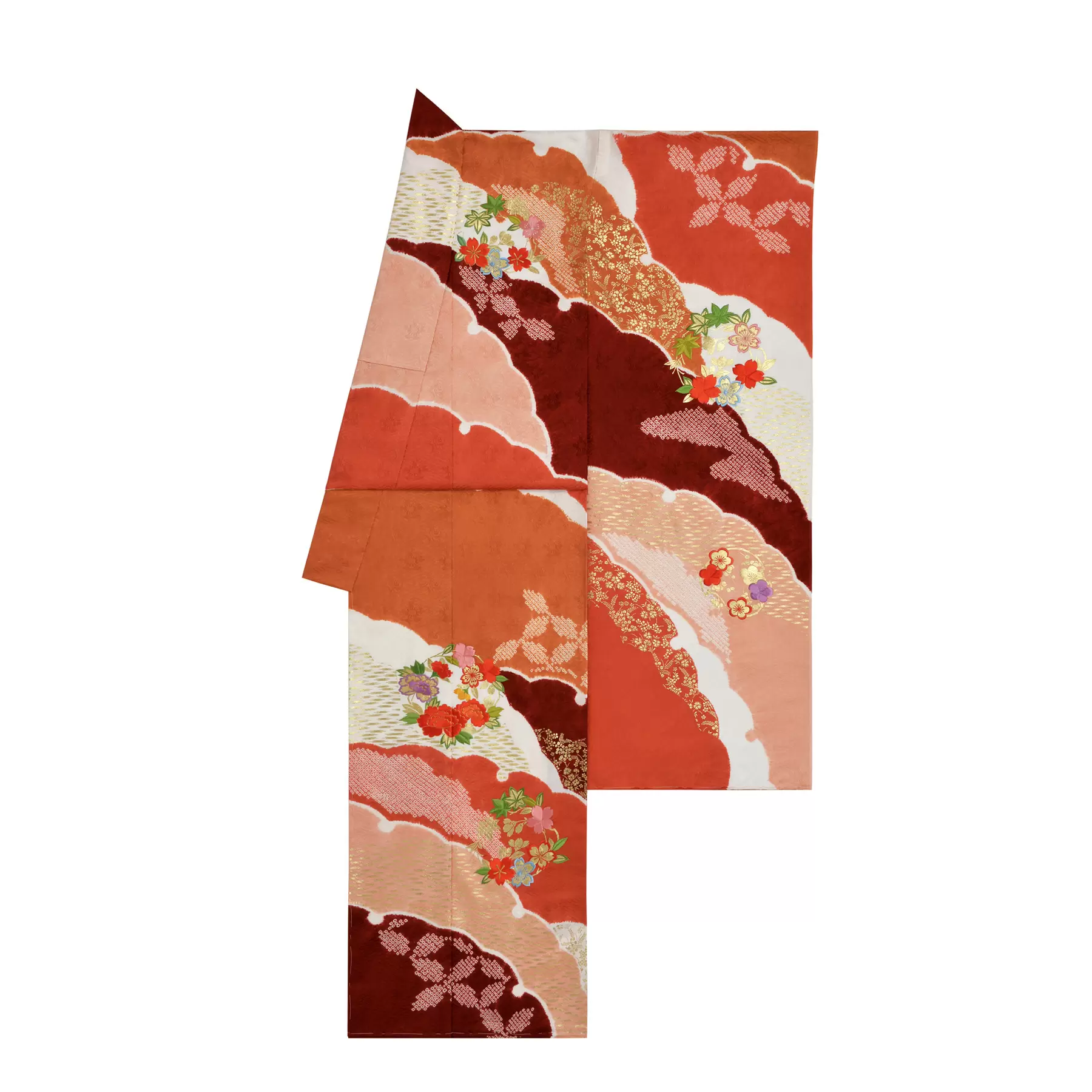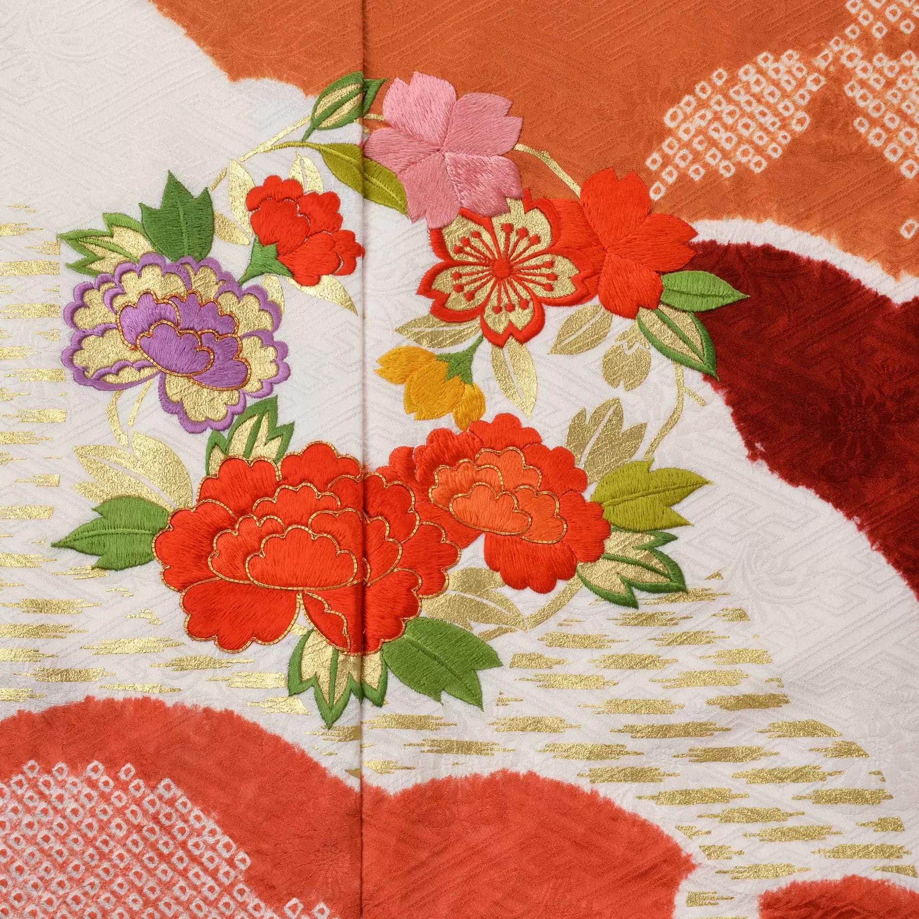 【振袖】絞り白場取雪輪重ね|朱赤