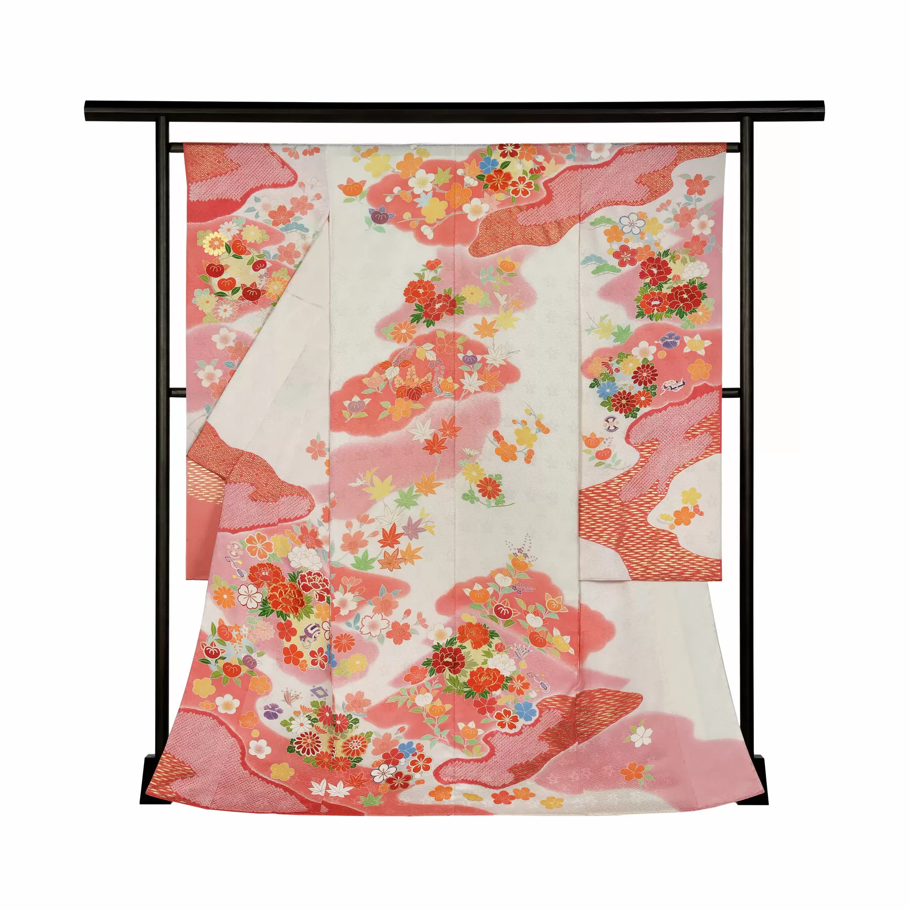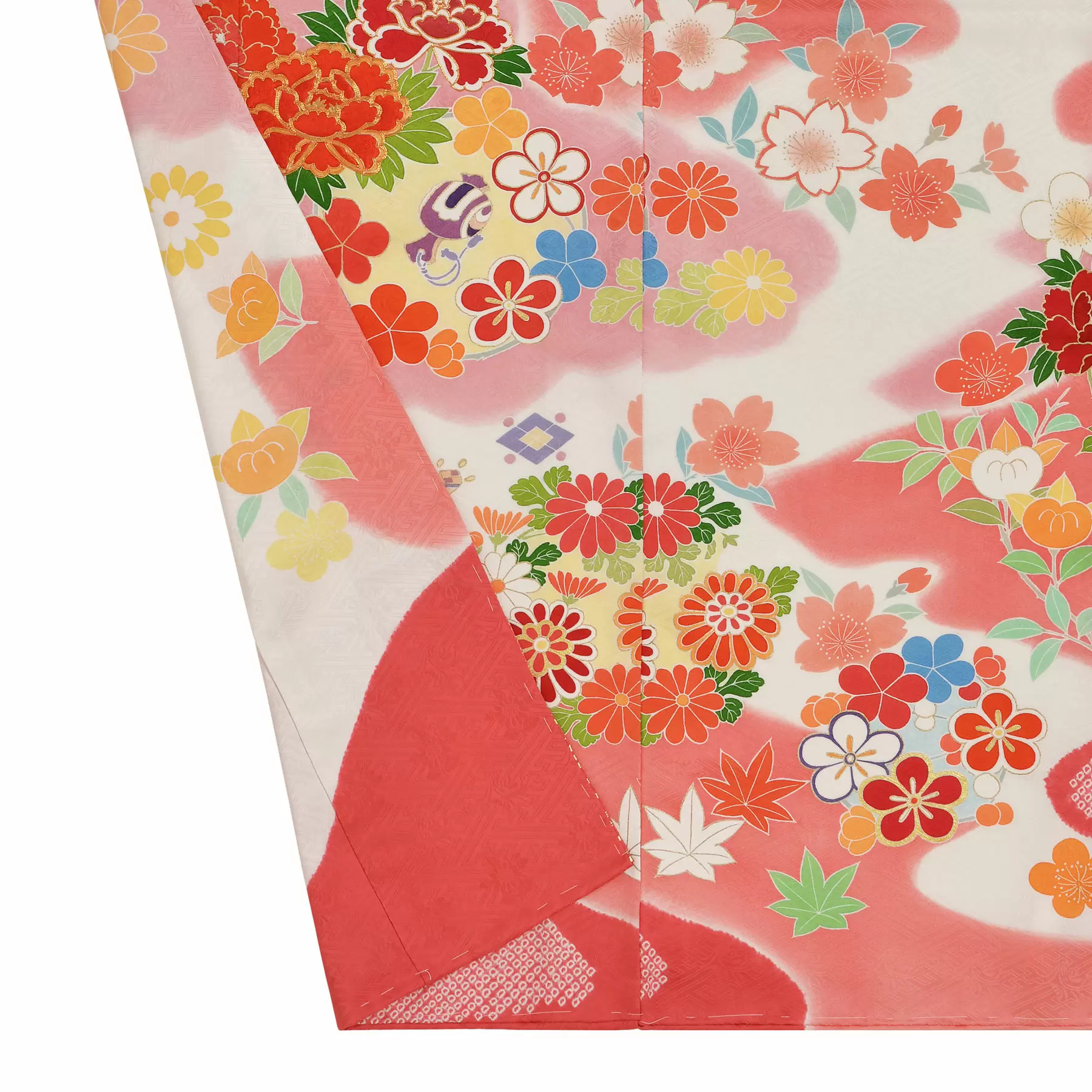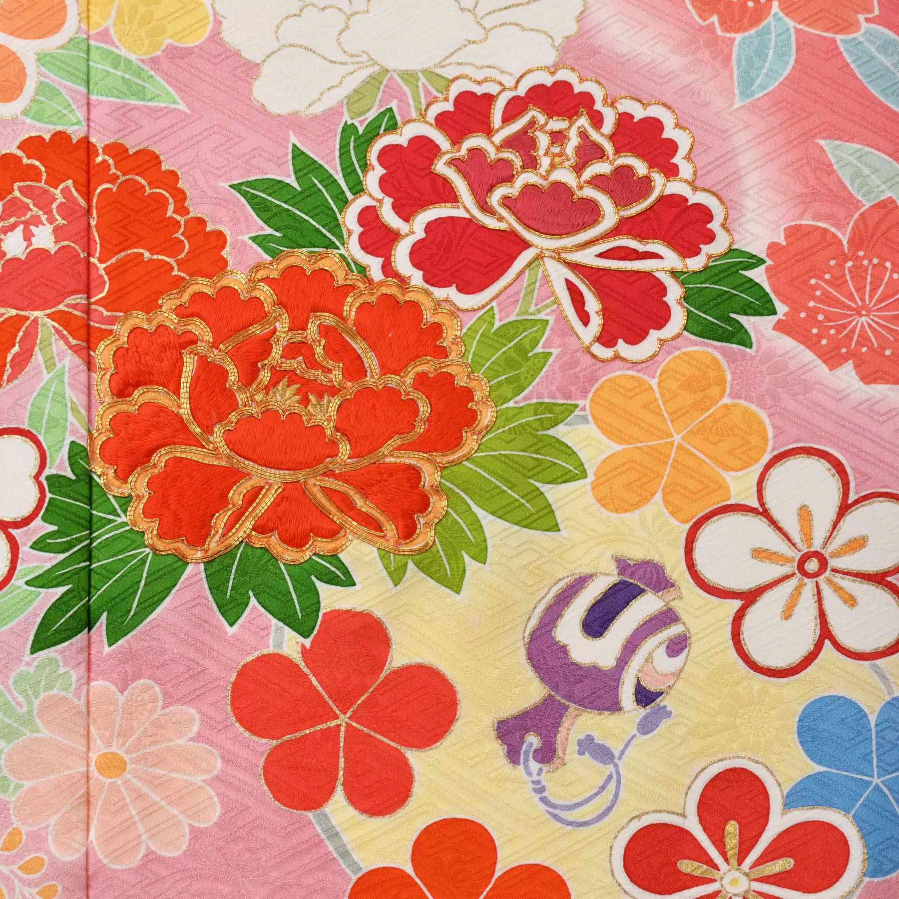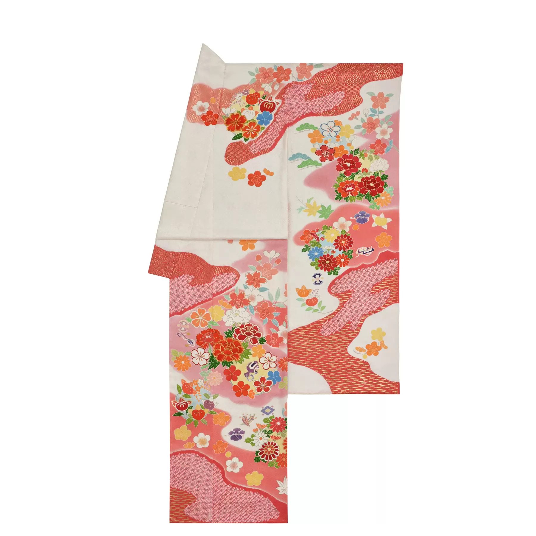 伝統的な古典柄をベースに、デザインや色彩は新鮮な感覚で、現代の女性を瑞々しく装う千總の振袖。晴れの日の心を華やかに彩ることを願って染めています。