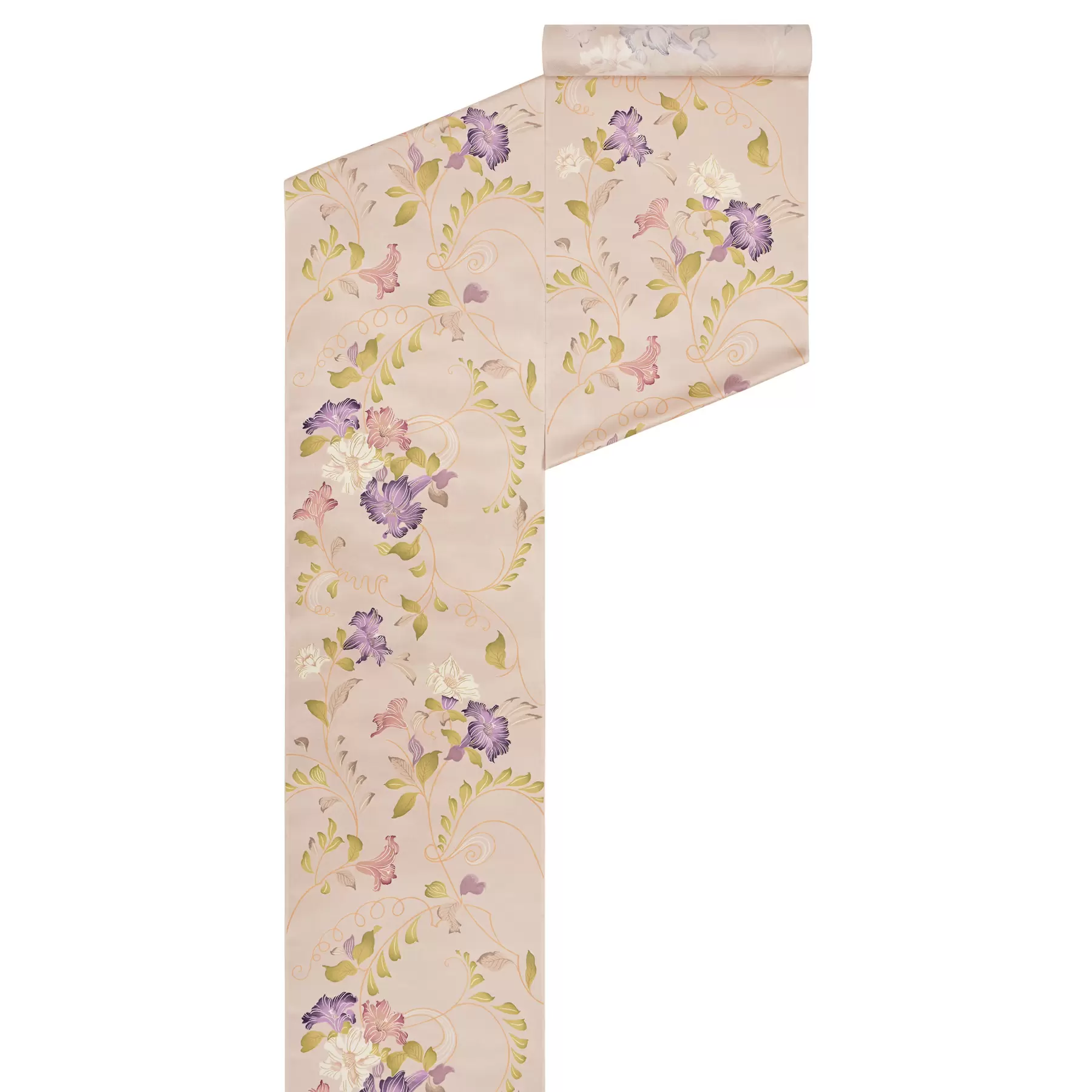 【小紋・友禅着尺】アルヌーボゆり唐草|ピンクパープル
