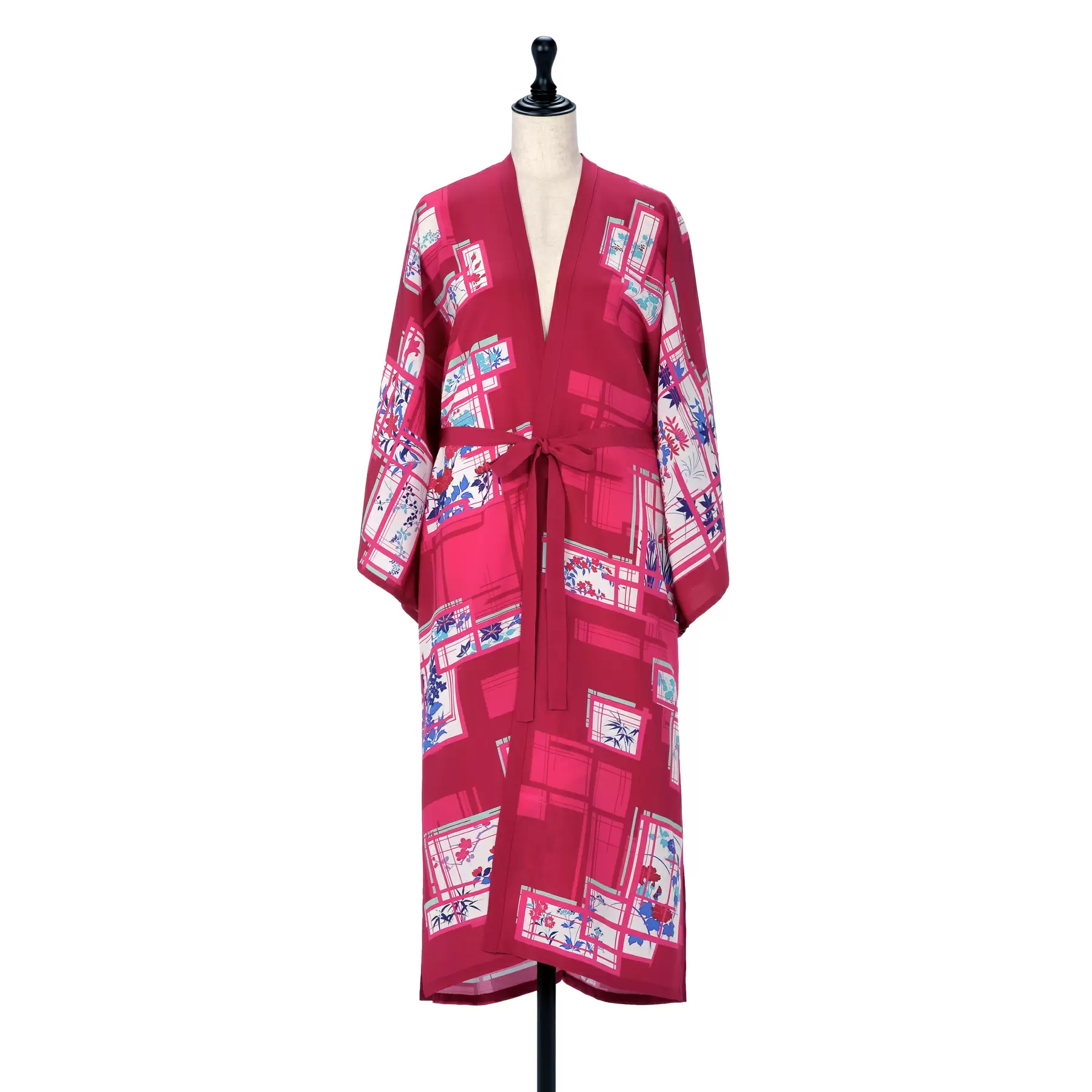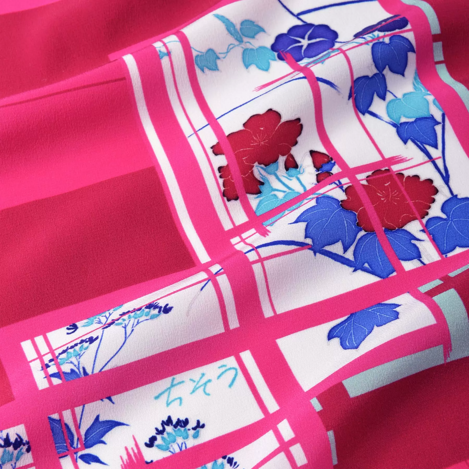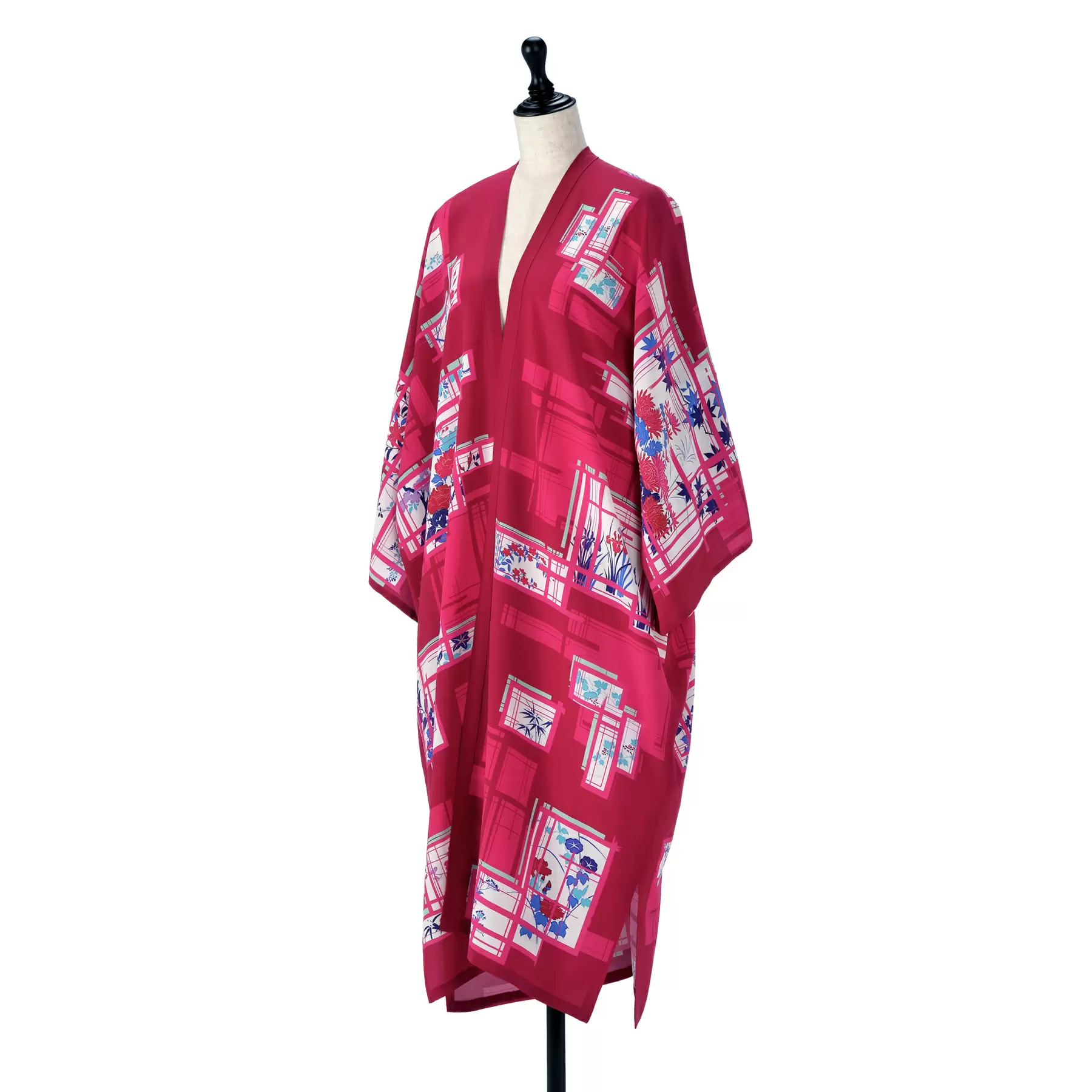 明治時代の着物のようなクラシックな美しさと、遊び心のあるポップなデザインが響き合う、千總ならではのガウンです。