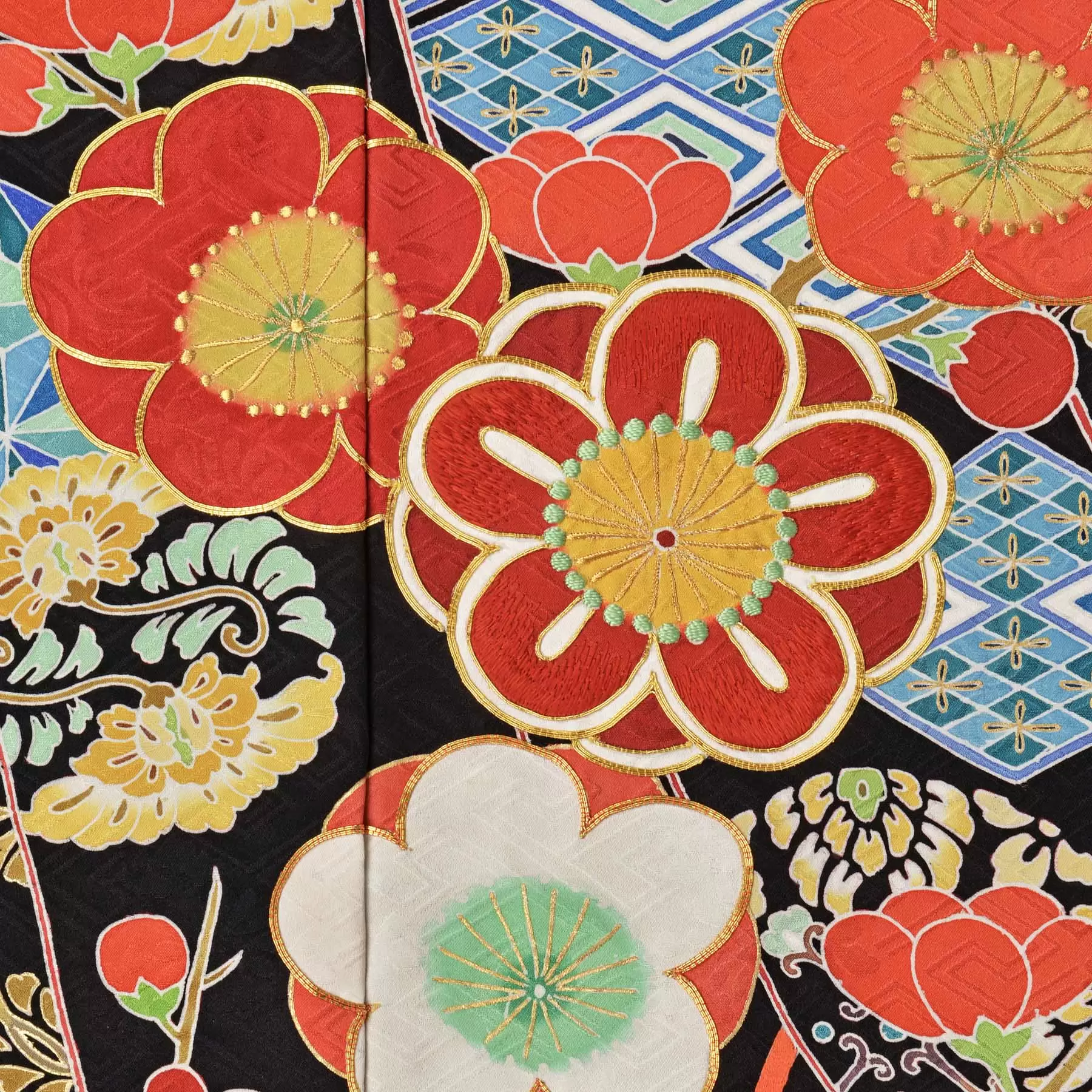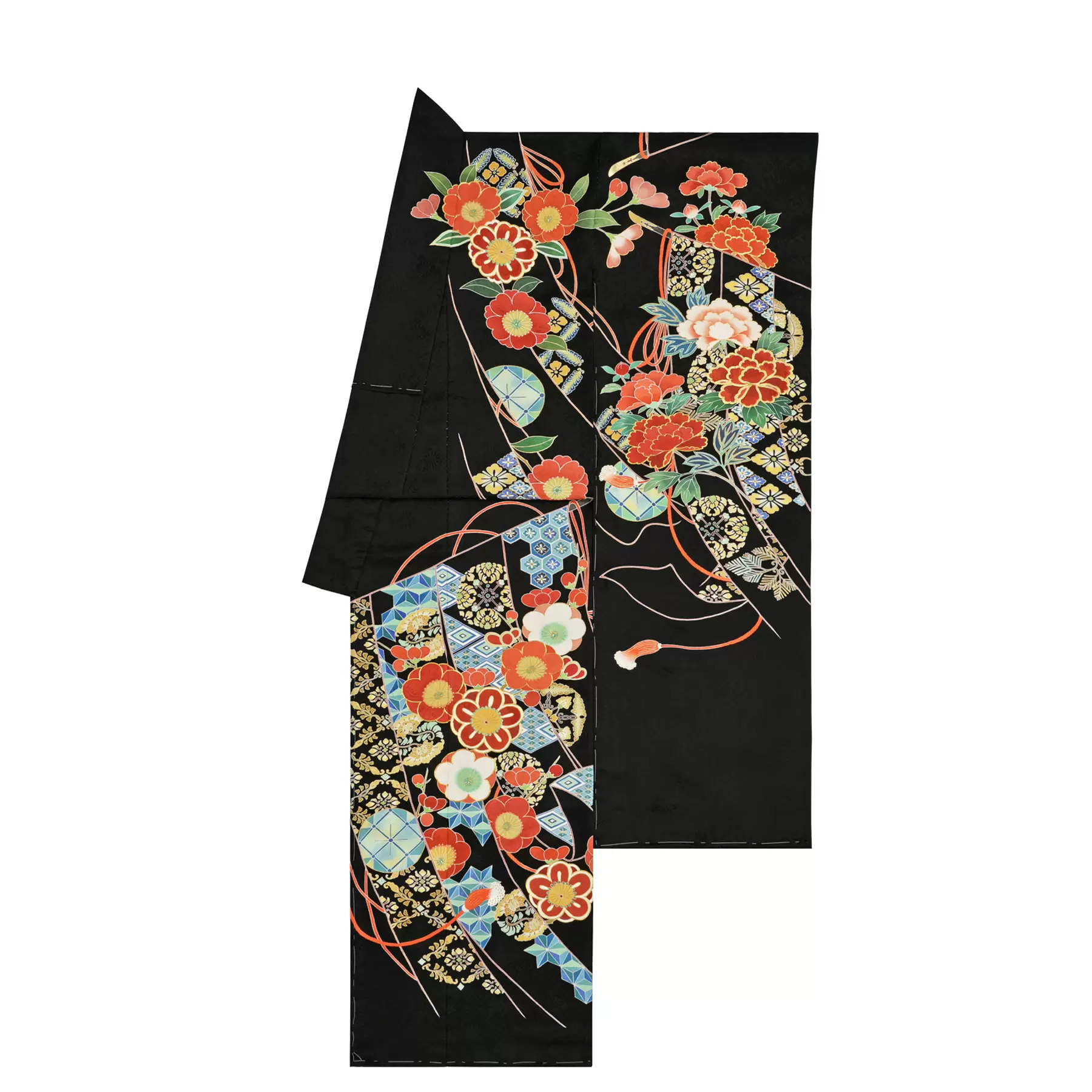 伝統的な古典柄をベースに、デザインや色彩は新鮮な感覚で、現代の女性を瑞々しく装う千總の振袖。晴れの日の心を華やかに彩ることを願って染めています。