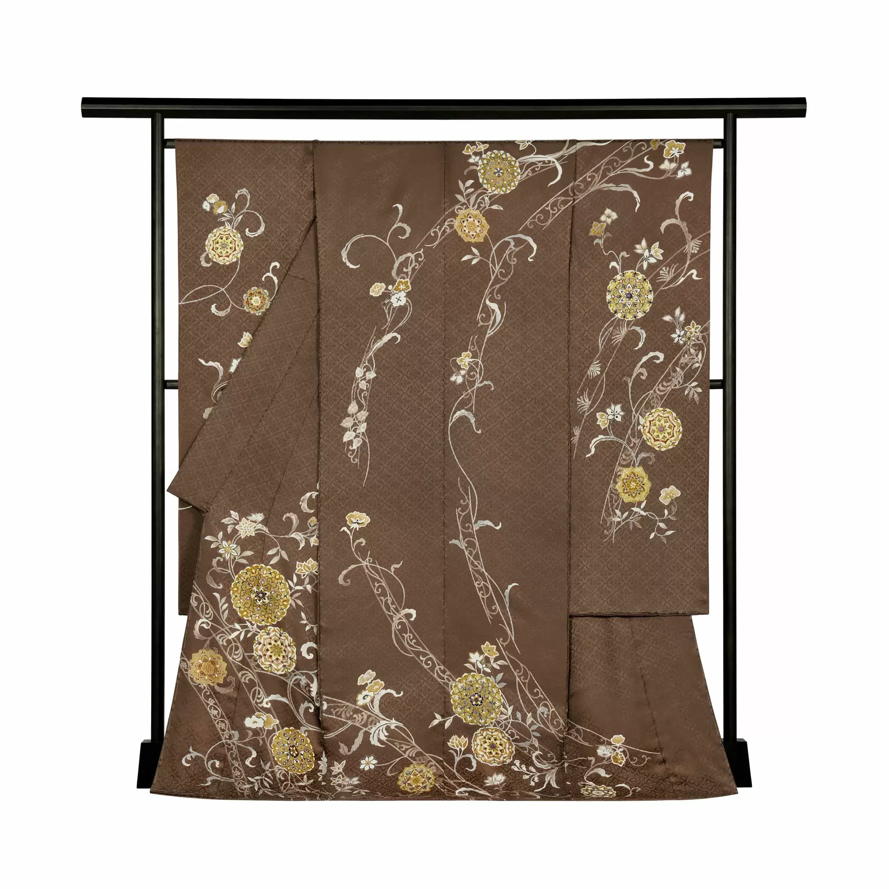 伝統的な古典柄をベースに、デザインや色彩は新鮮な感覚で、現代の女性を瑞々しく装う千總の振袖。晴れの日の心を華やかに彩ることを願って染めています。