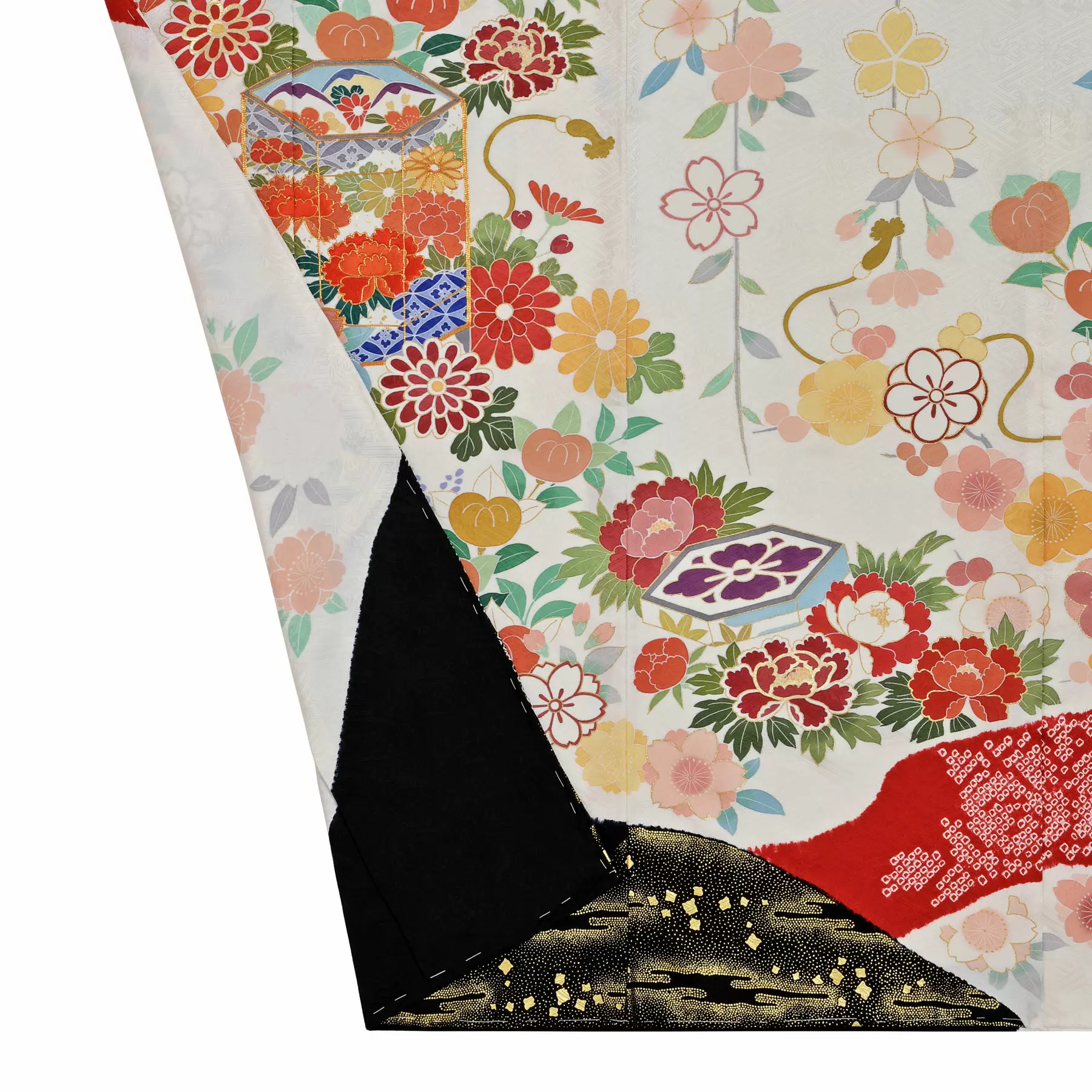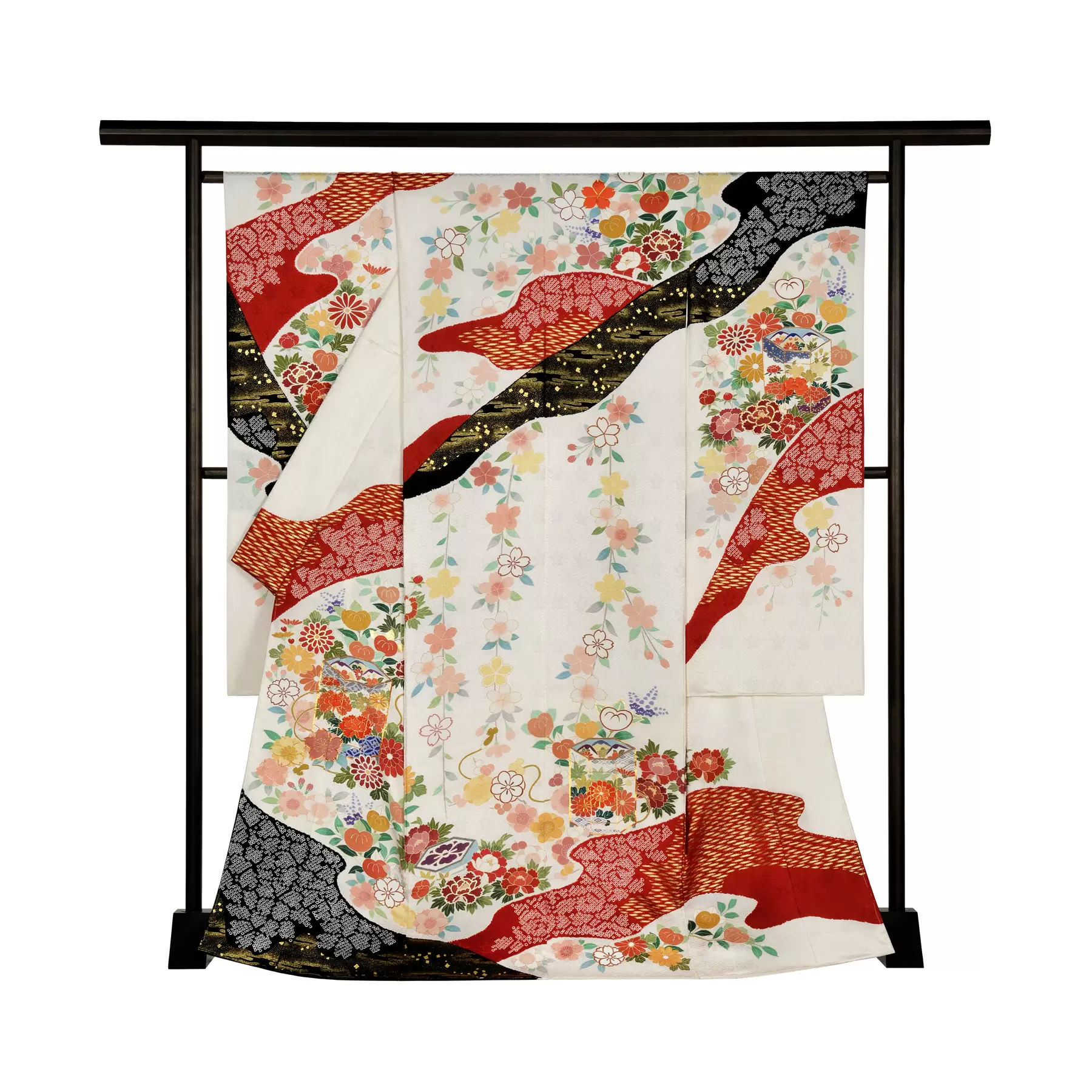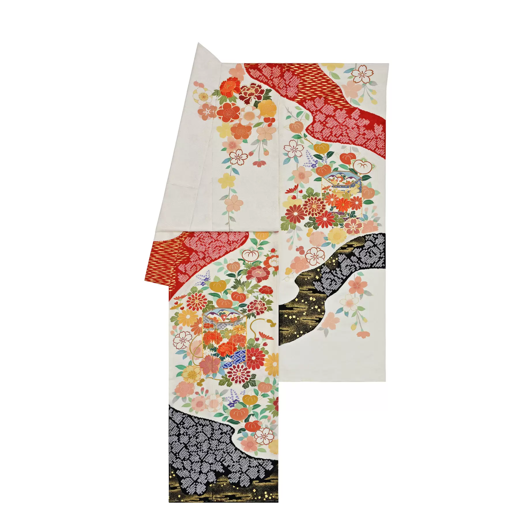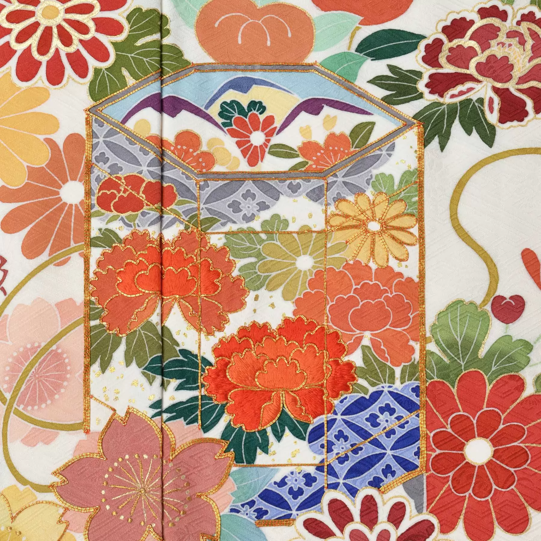 伝統的な古典柄をベースに、デザインや色彩は新鮮な感覚で、現代の女性を瑞々しく装う千總の振袖。晴れの日の心を華やかに彩ることを願って染めています。