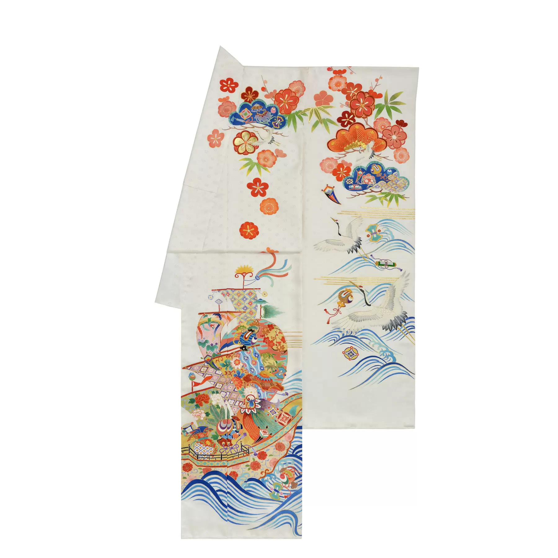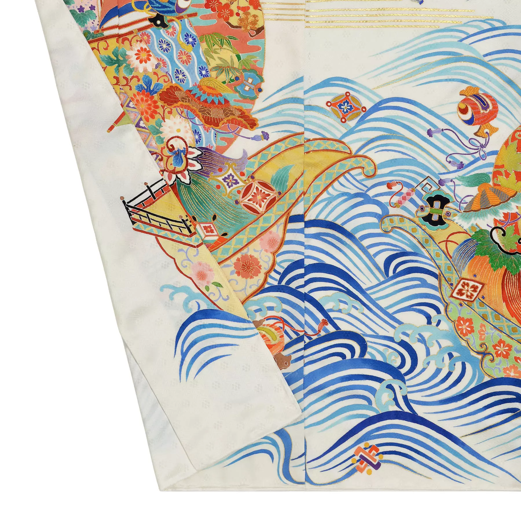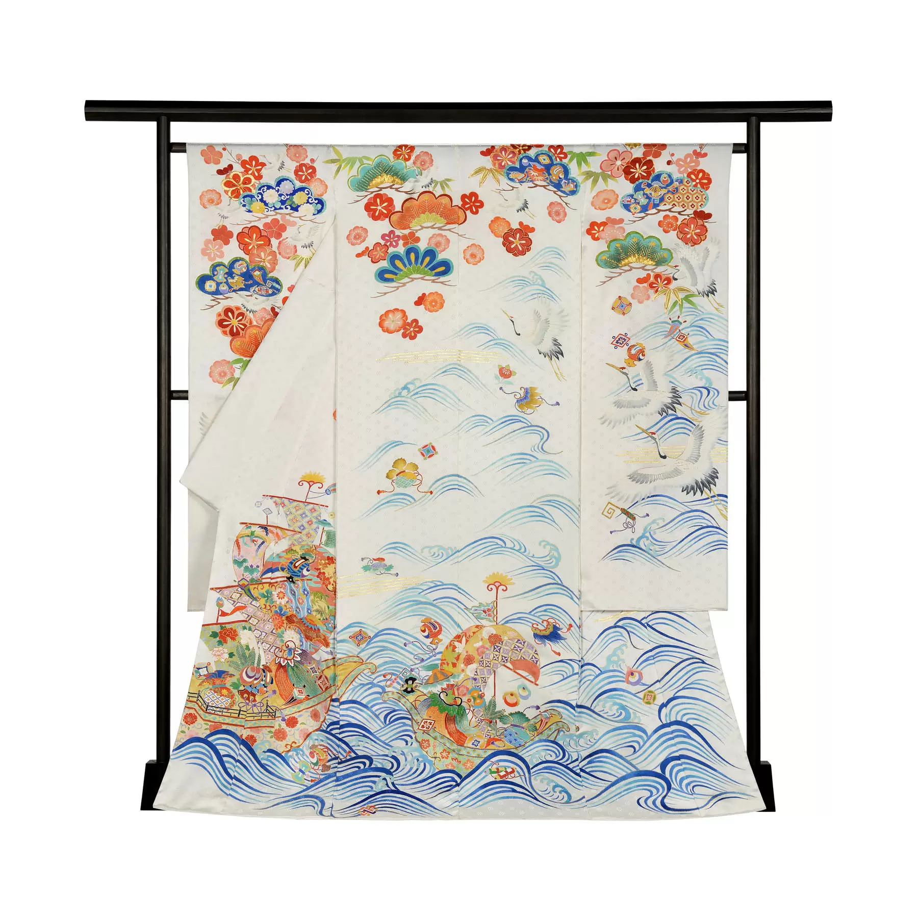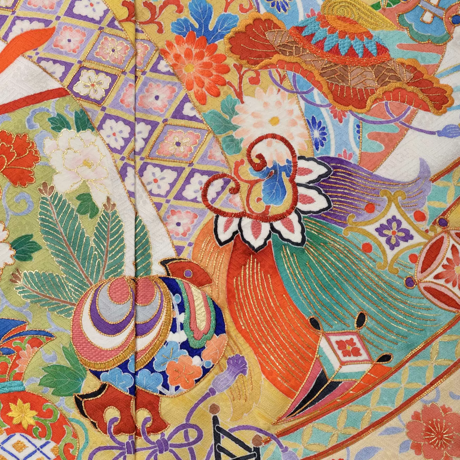 伝統的な古典柄をベースに、デザインや色彩は新鮮な感覚で、現代の女性を瑞々しく装う千總の振袖。晴れの日の心を華やかに彩ることを願って染めています。