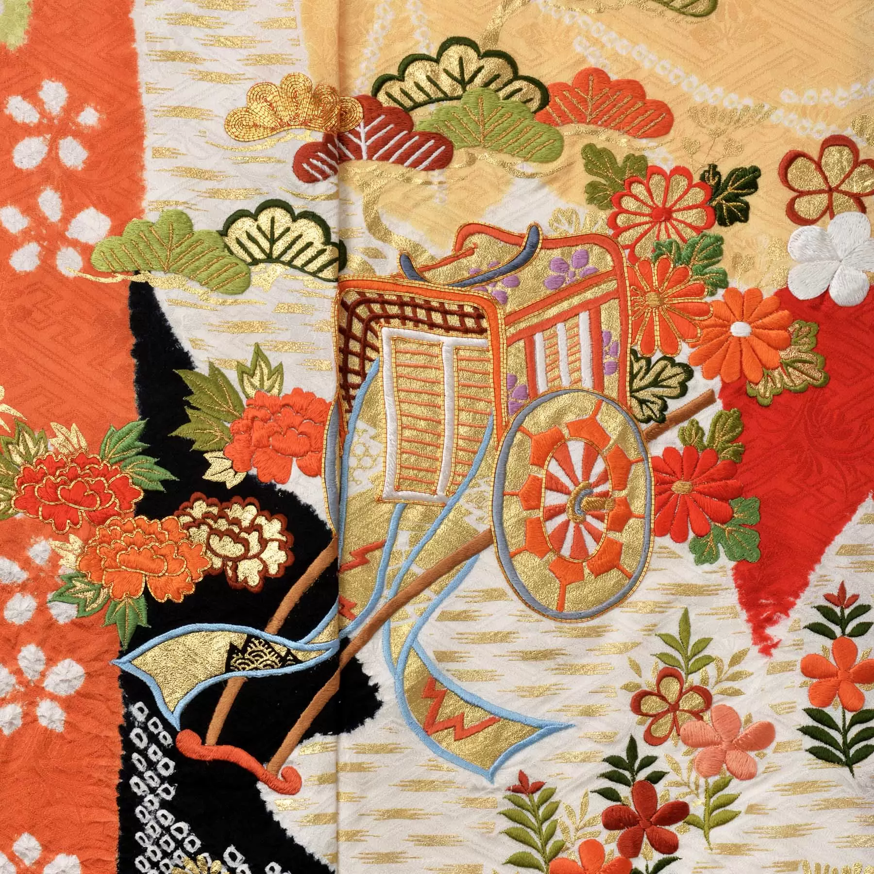 伝統的な古典柄をベースに、デザインや色彩は新鮮な感覚で、現代の女性を瑞々しく装う千總の振袖。晴れの日の心を華やかに彩ることを願って染めています。