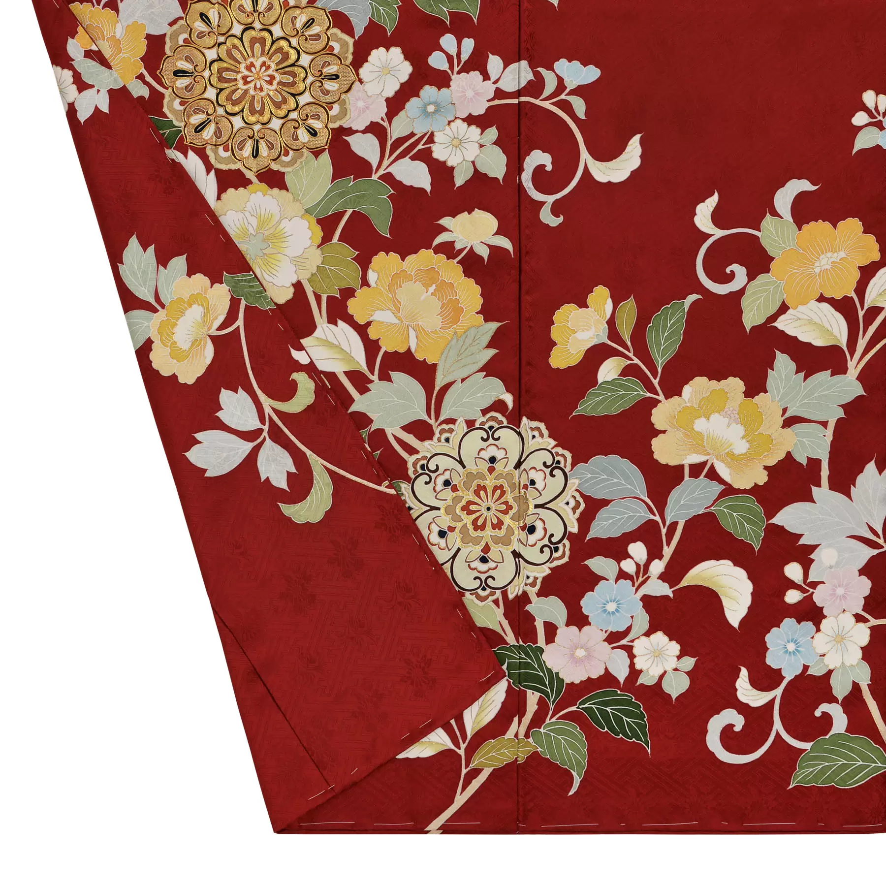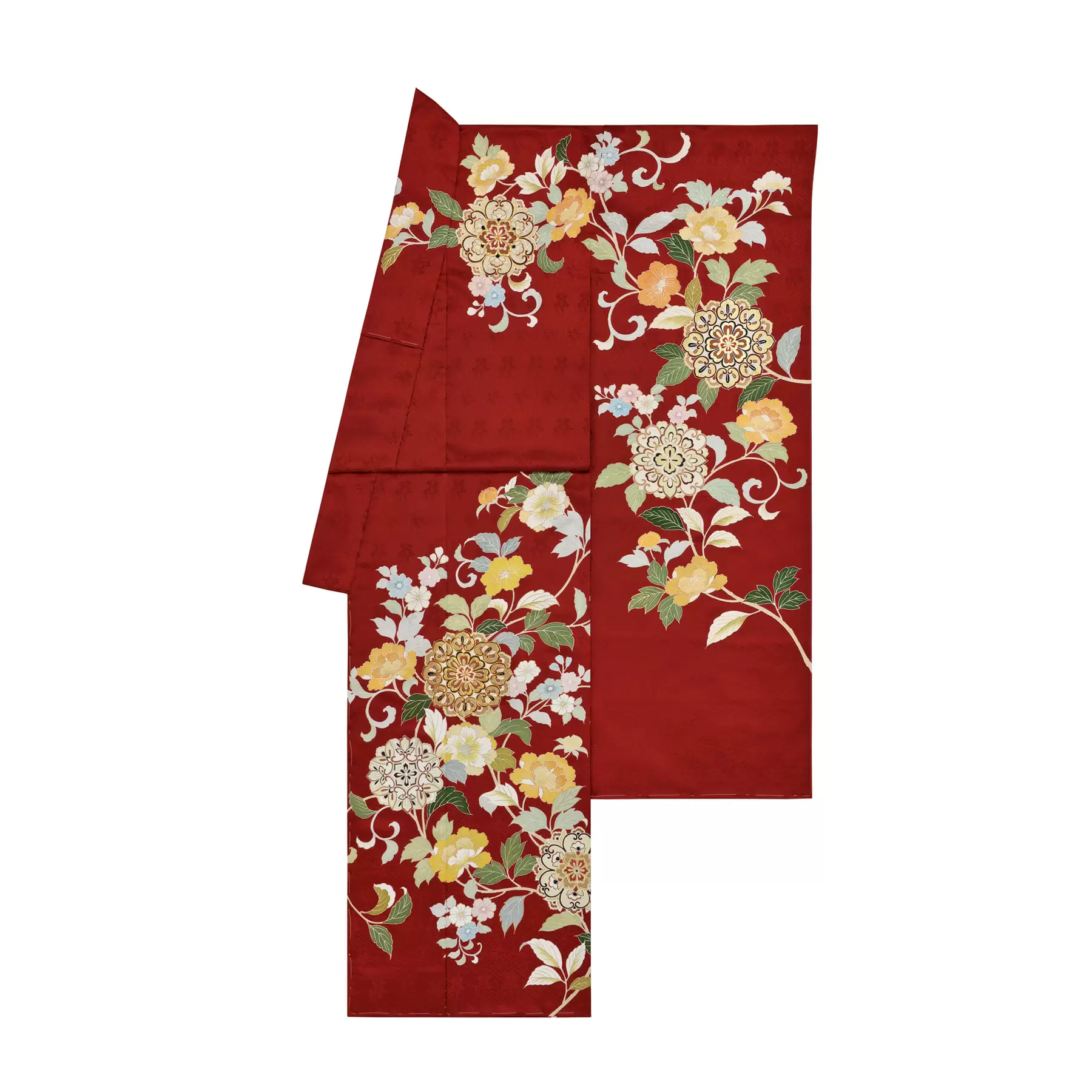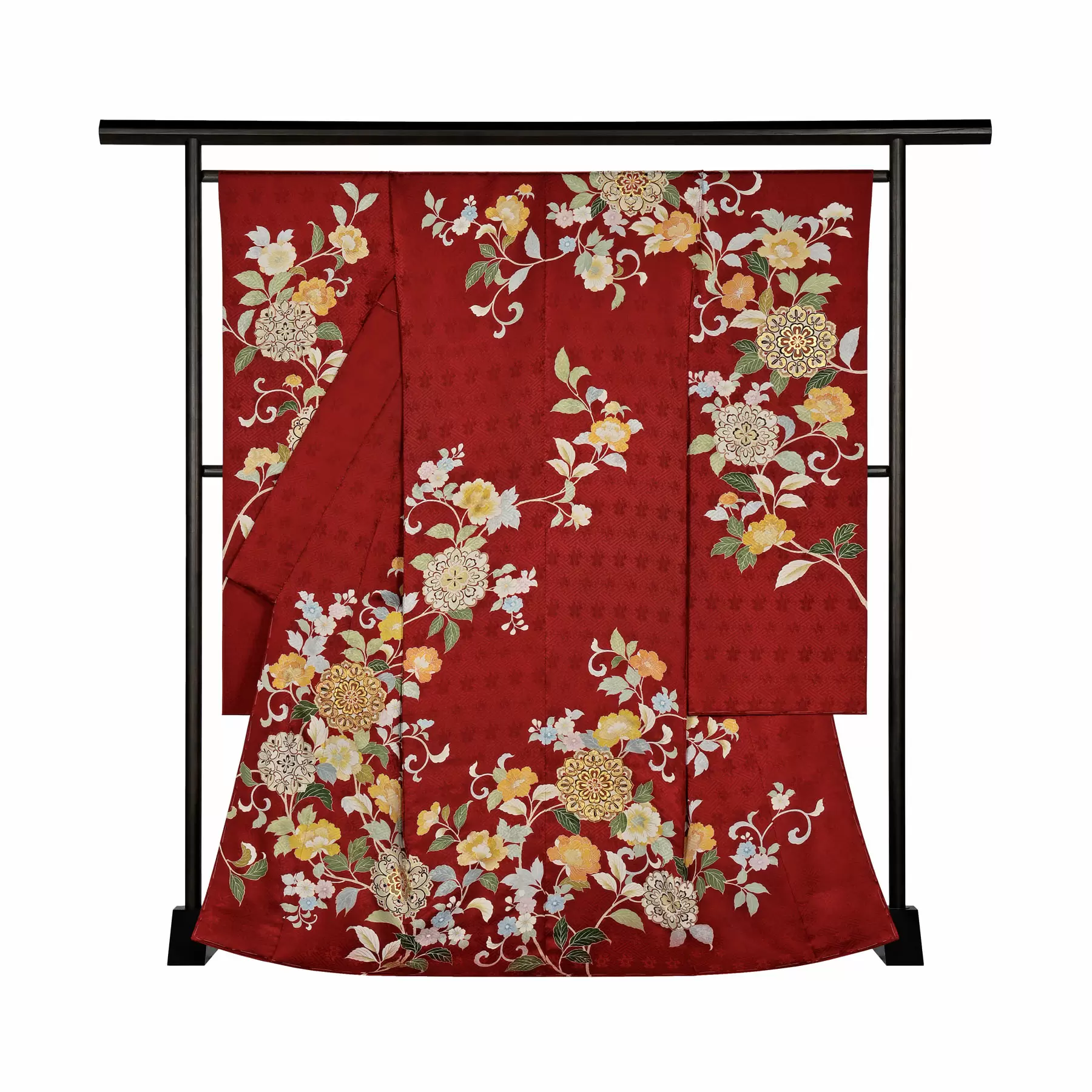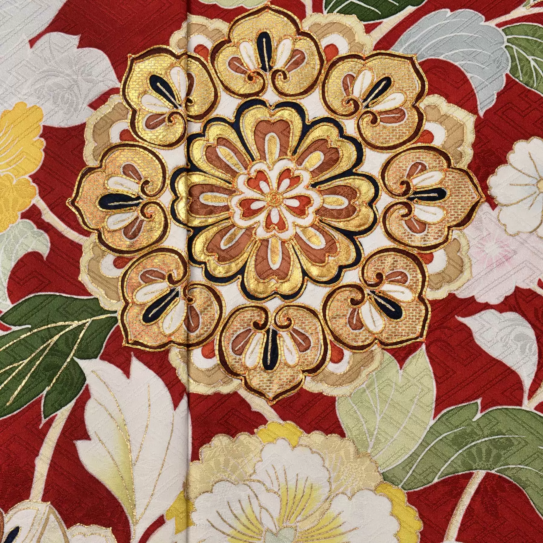 伝統的な古典柄をベースに、デザインや色彩は新鮮な感覚で、現代の女性を瑞々しく装う千總の振袖。晴れの日の心を華やかに彩ることを願って染めています。