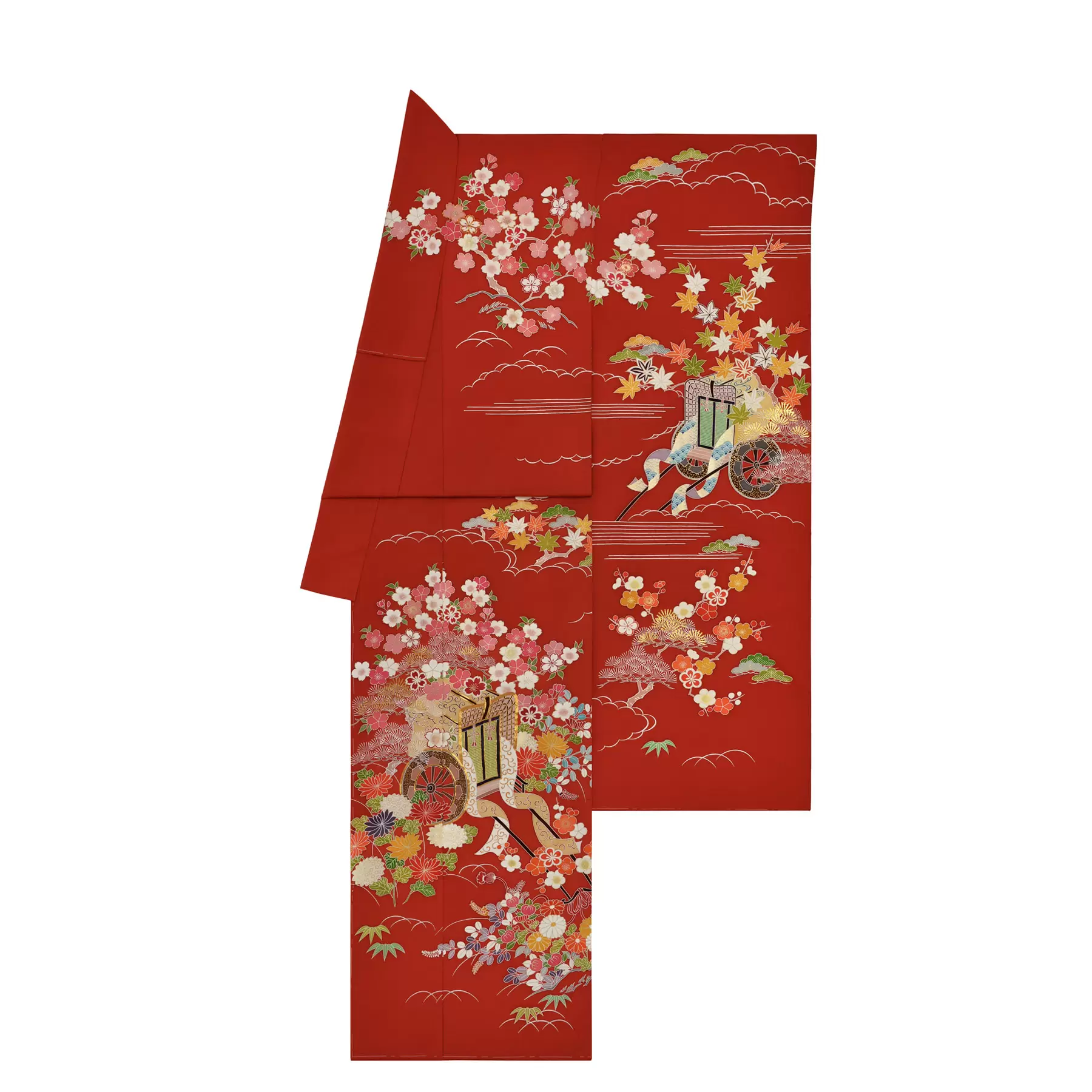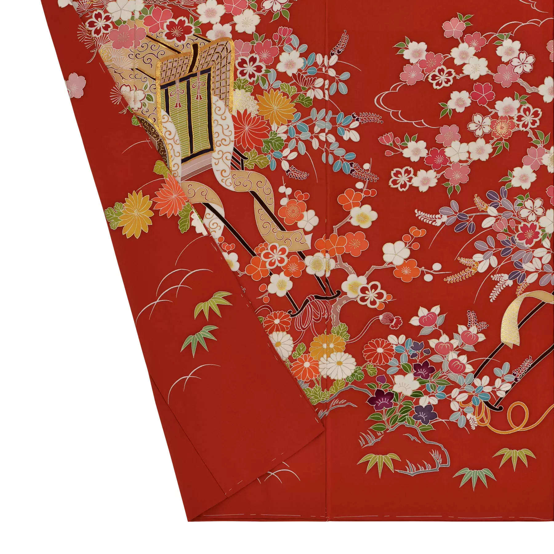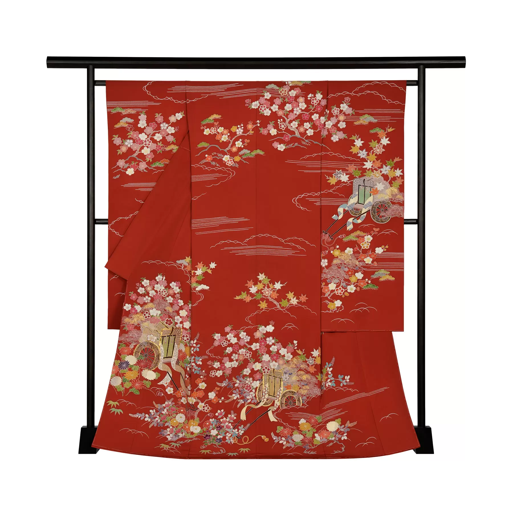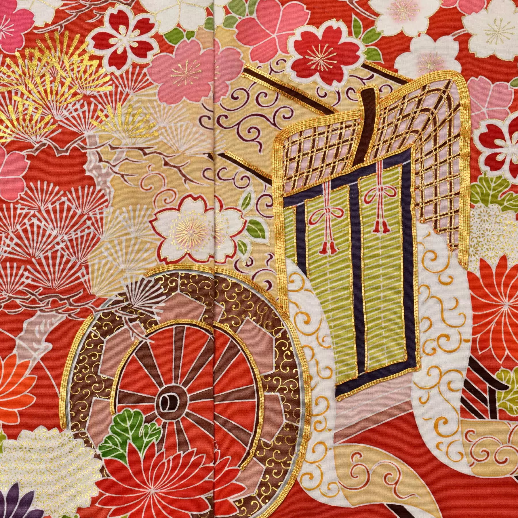 伝統的な古典柄をベースに、デザインや色彩は新鮮な感覚で、現代の女性を瑞々しく装う千總の振袖。晴れの日の心を華やかに彩ることを願って染めています。