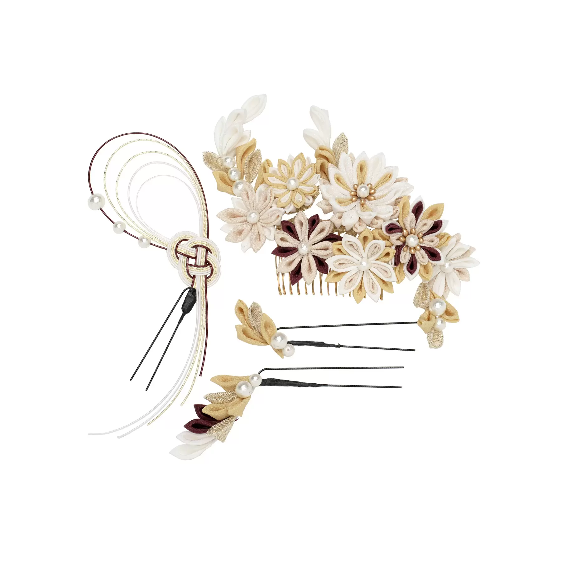 千總オリジナルの袋帯と髪飾り、コーディネート小物を合わせたセットです。