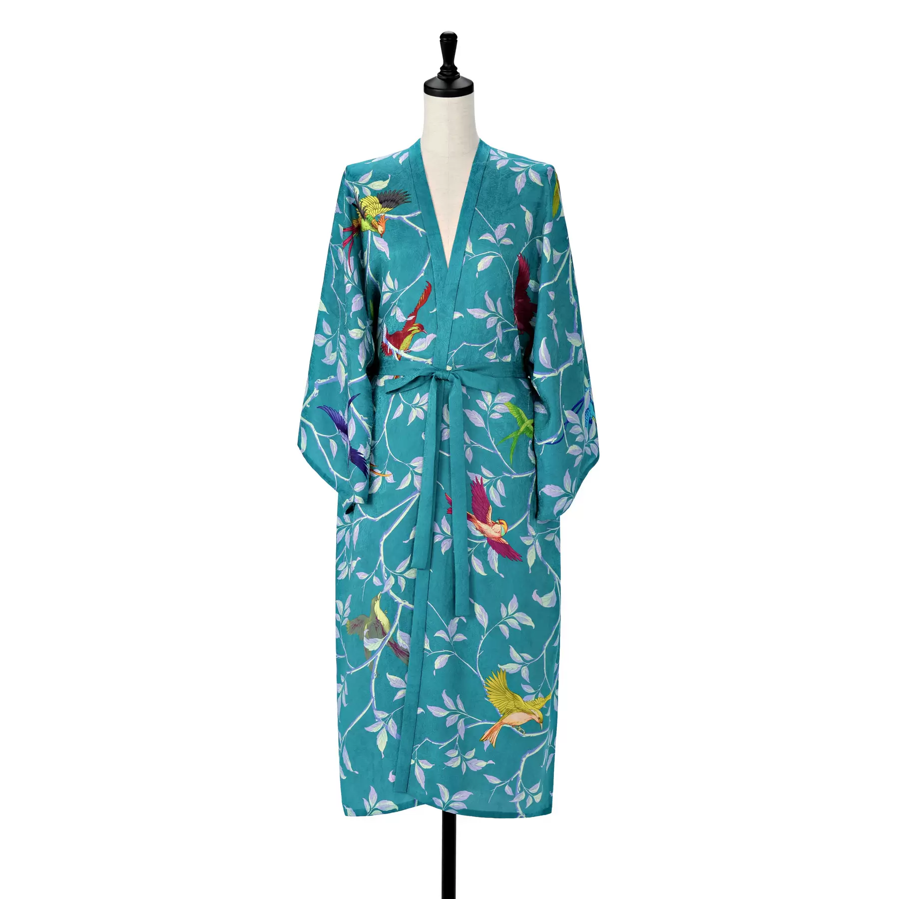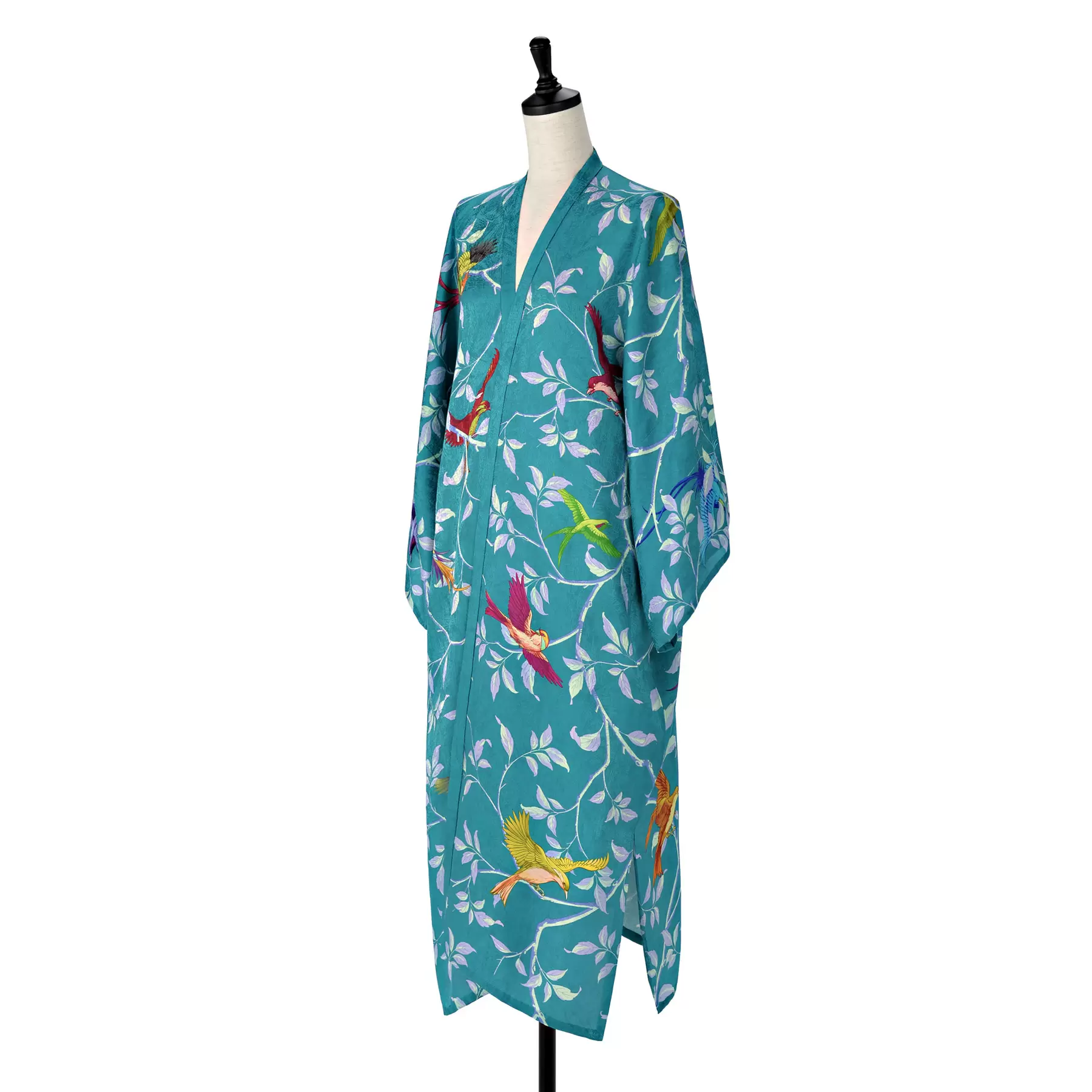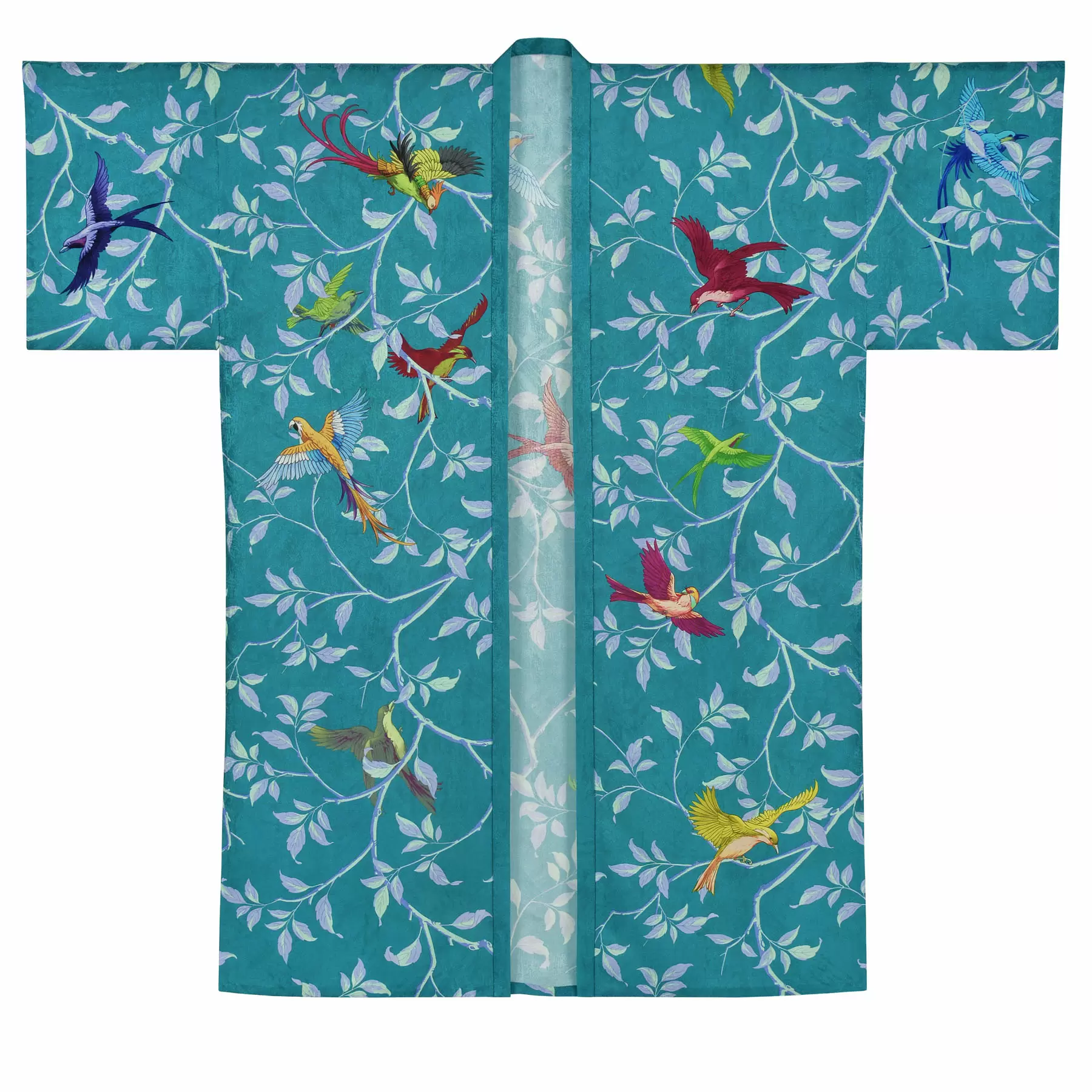 ガウン全体に描かれた総柄に、自然に包まれるような優しさや飛び立つような伸びやかさが感じられます。