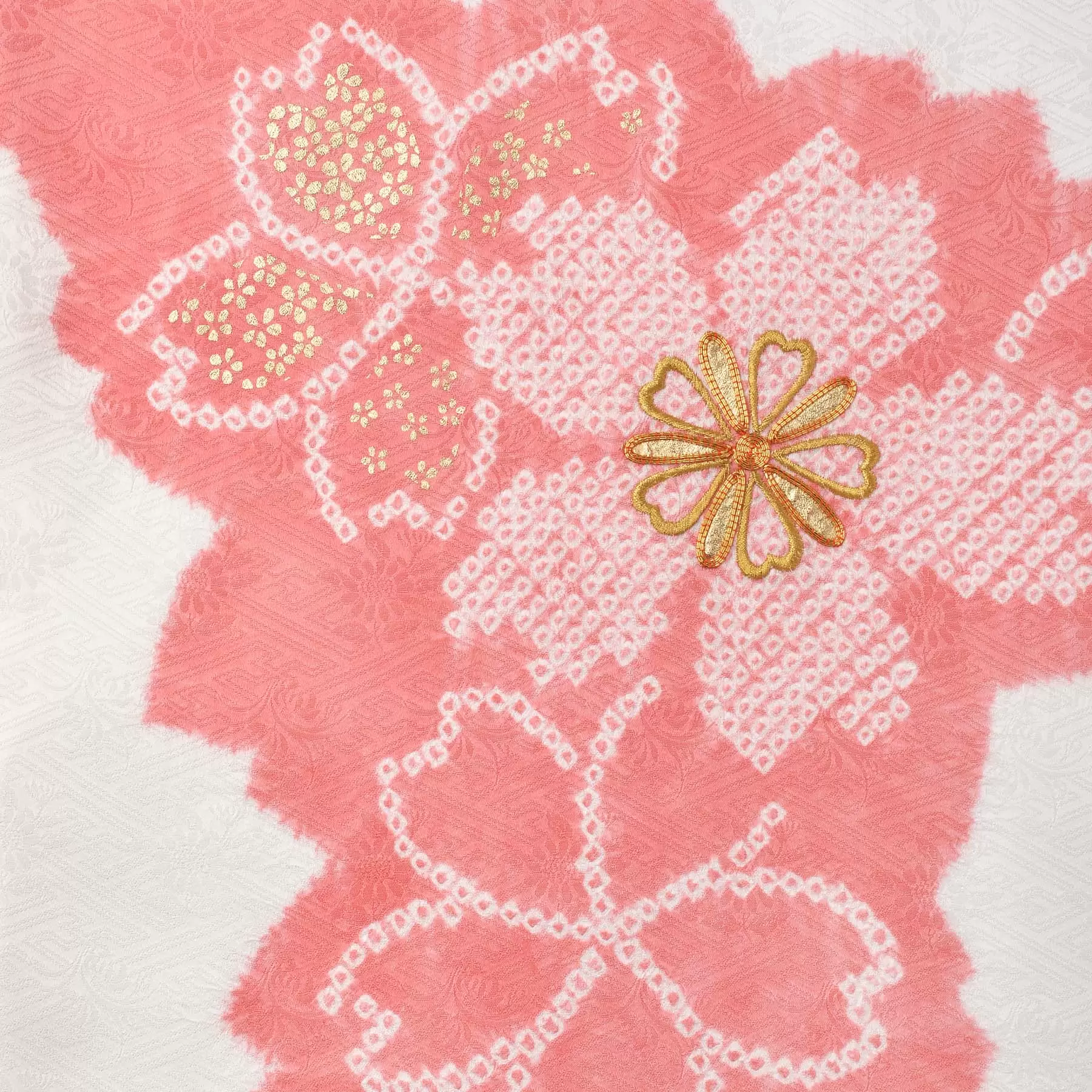 白地にやわらかなピンクの絞りを合わせ、やさしく愛らしい趣に仕上げました。