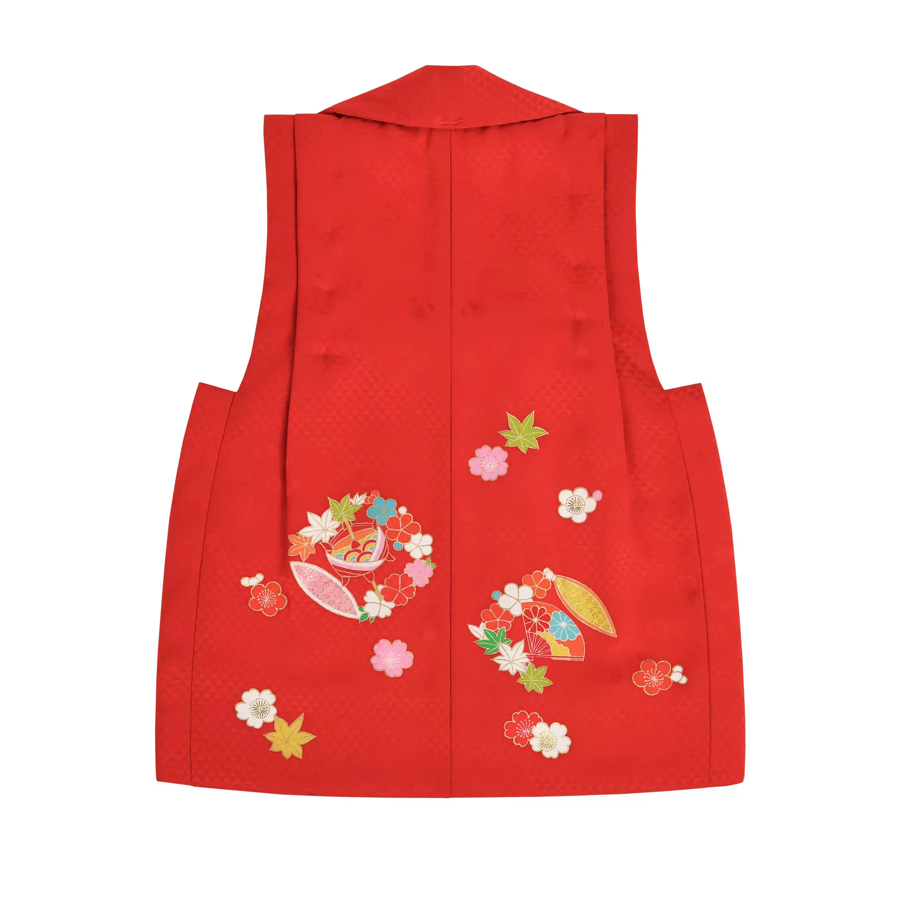 千總の被布は、お子様のご負担にならないよう軽い生地を使用し、綿を入れ、ふわりと柔らかくお仕立してし、衿には可愛らしい飾り紐をお付けしています。