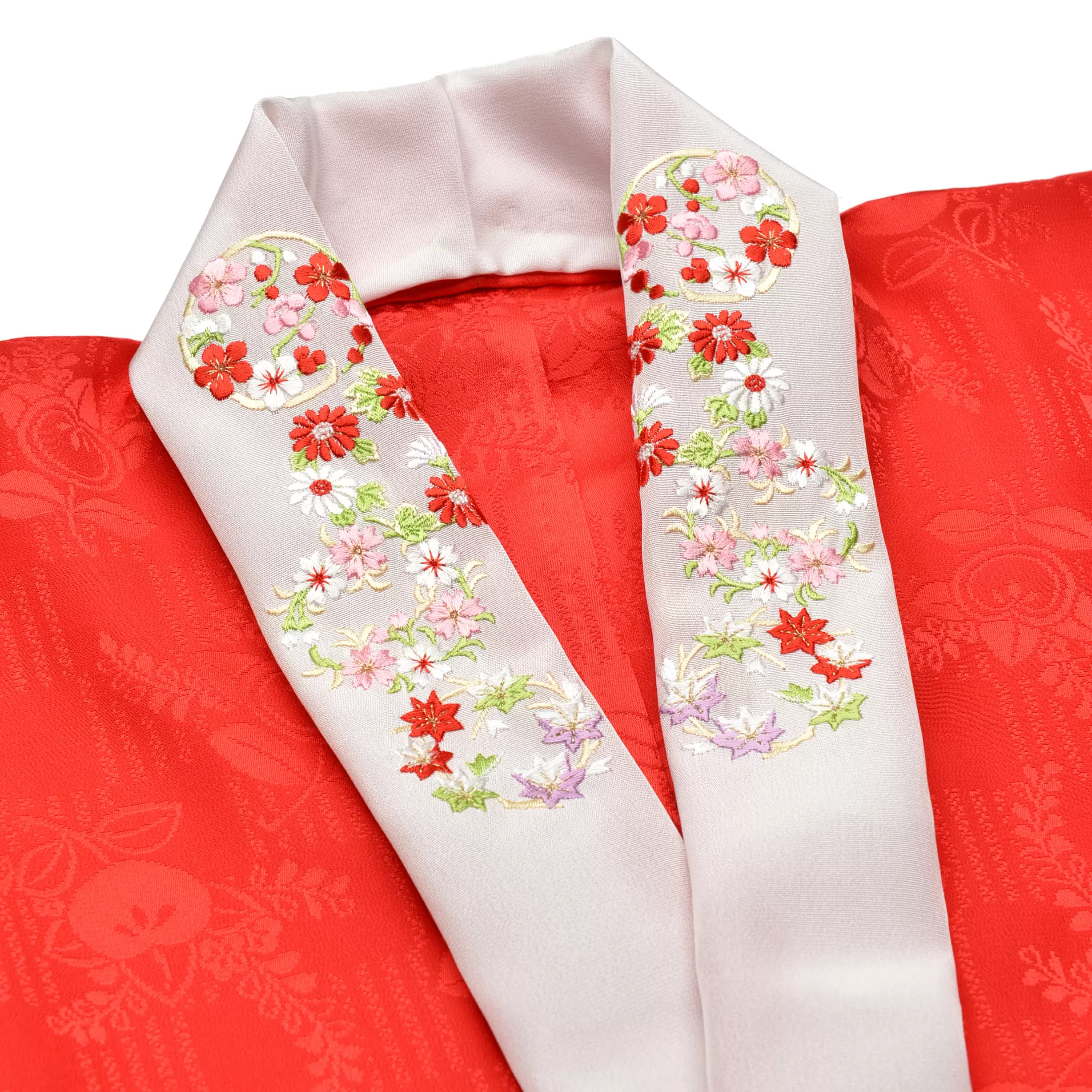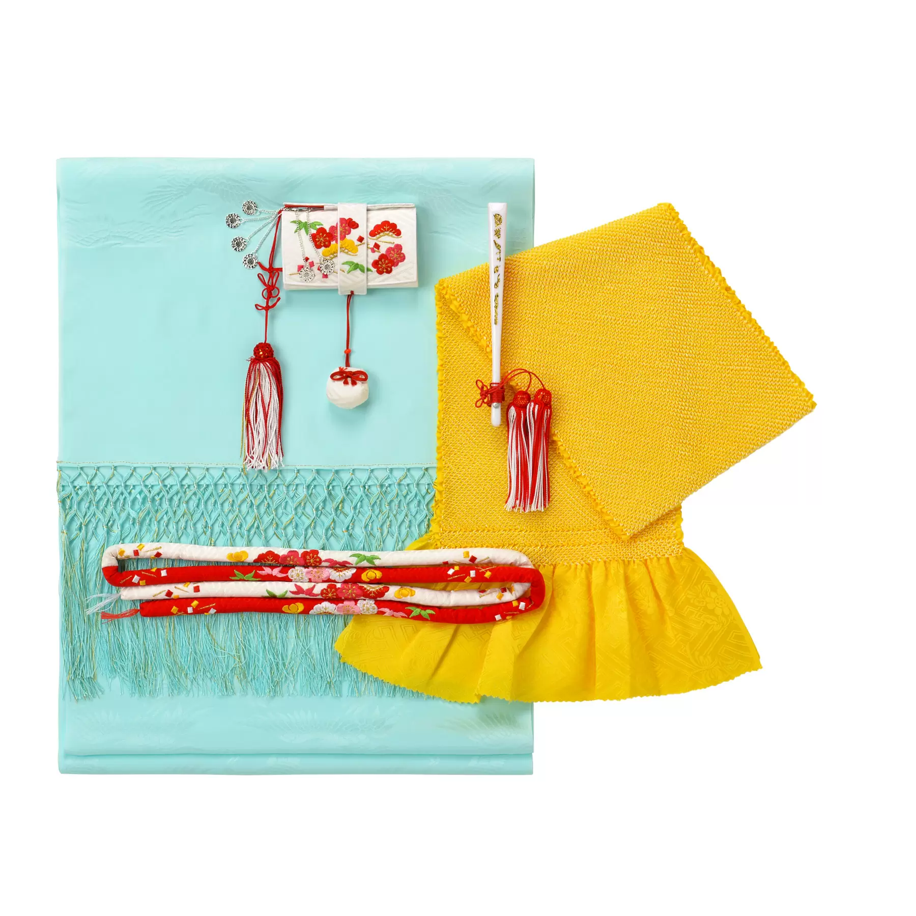刺繍半衿付き長襦袢、子供用袋帯、コーディネート小物を合わせたセットです。
