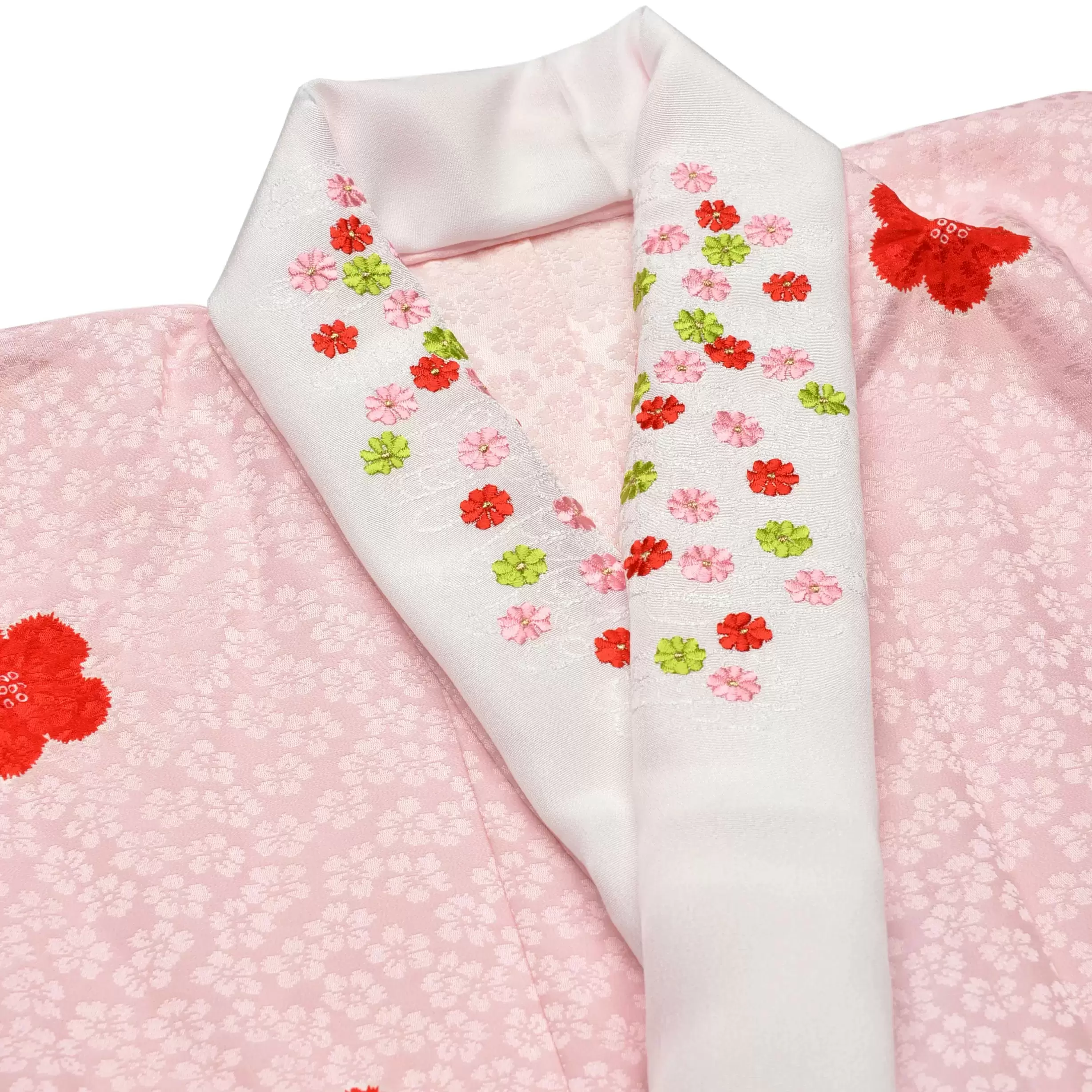 千總オリジナルの三つ身と被布、刺繍半衿の付いた長襦袢を合わせたセットです。