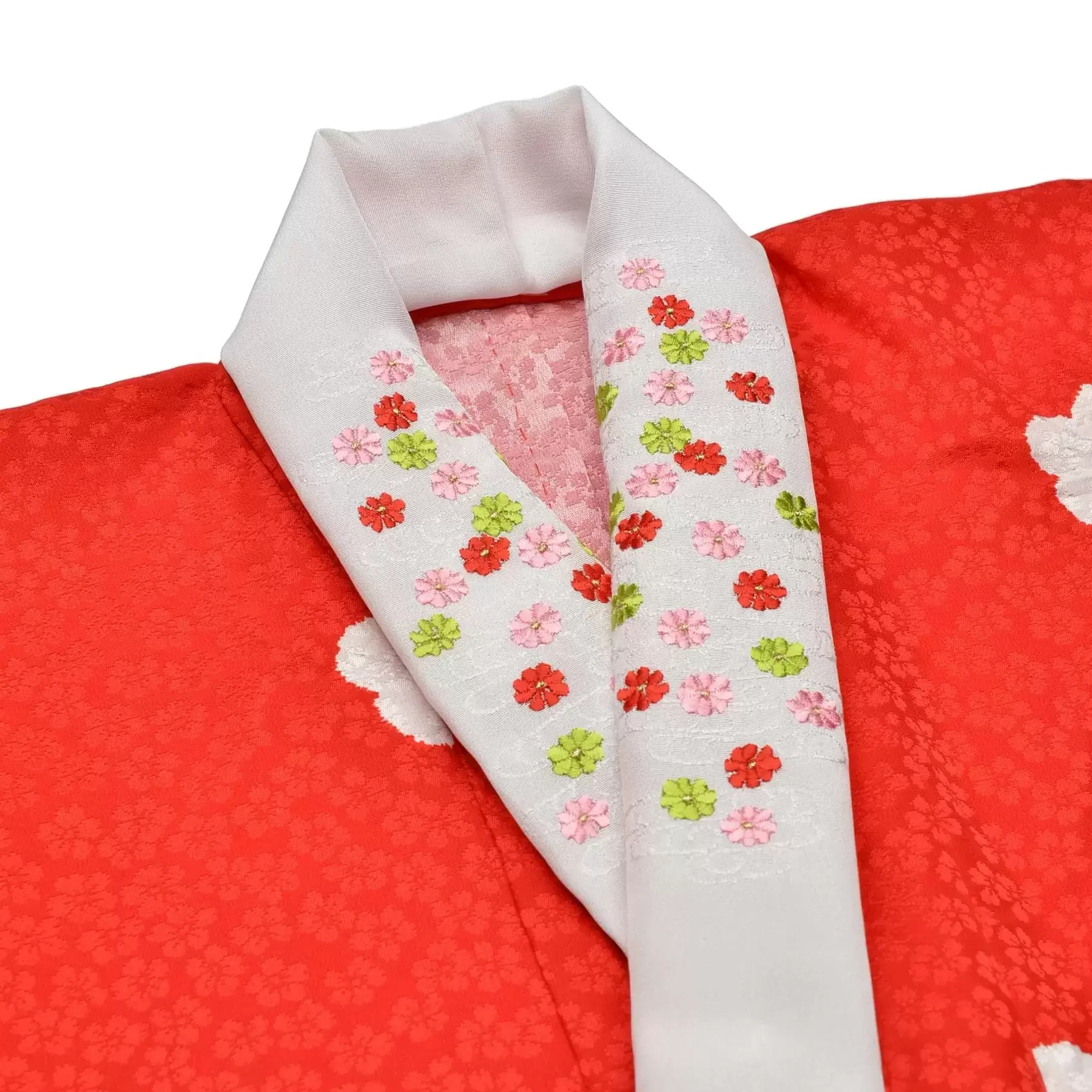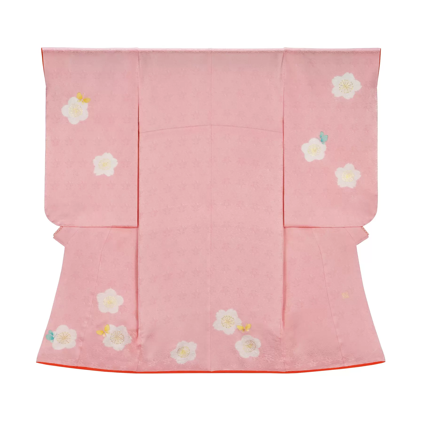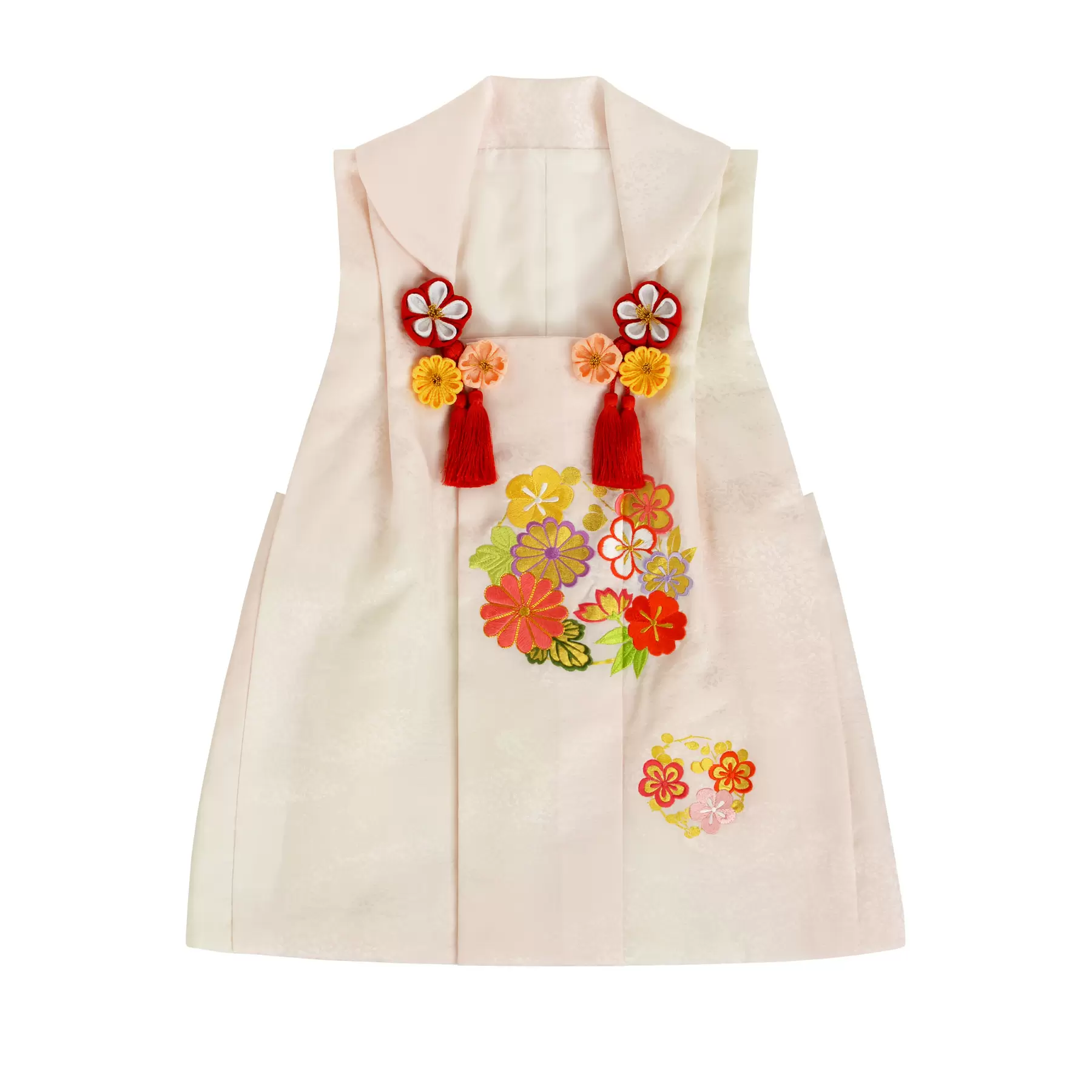 千總オリジナルの三つ身と被布、刺繍半衿の付いた長襦袢を合わせたセットです。