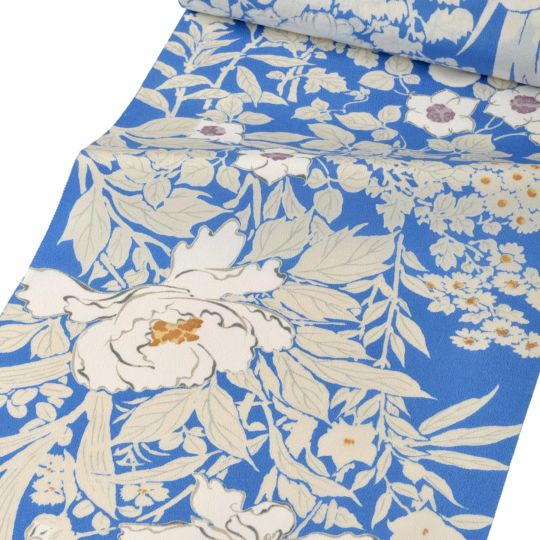 【小紋・友禅着尺】シルエット琳派百花|ブルー