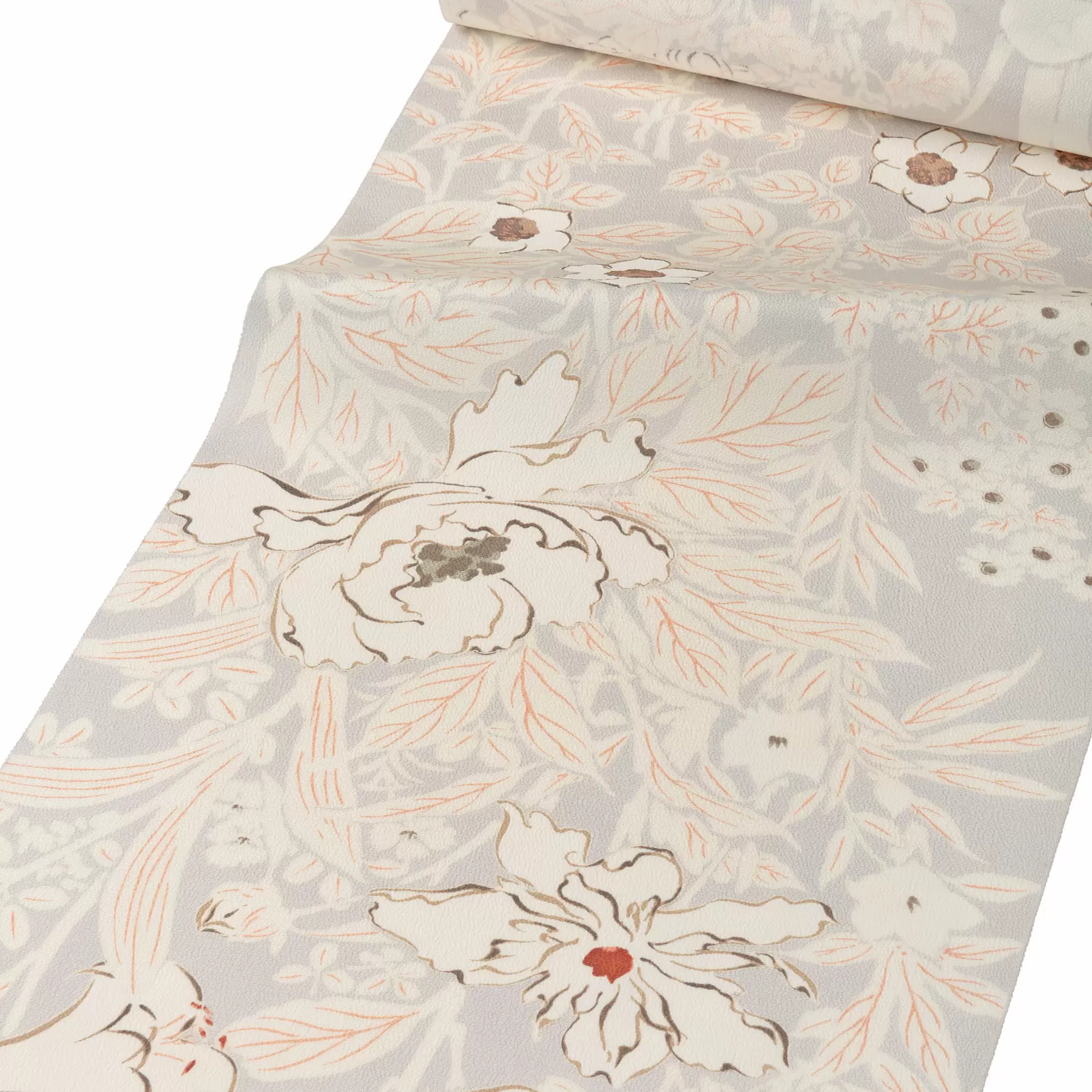 【小紋・友禅着尺】シルエット琳派百花|グレー