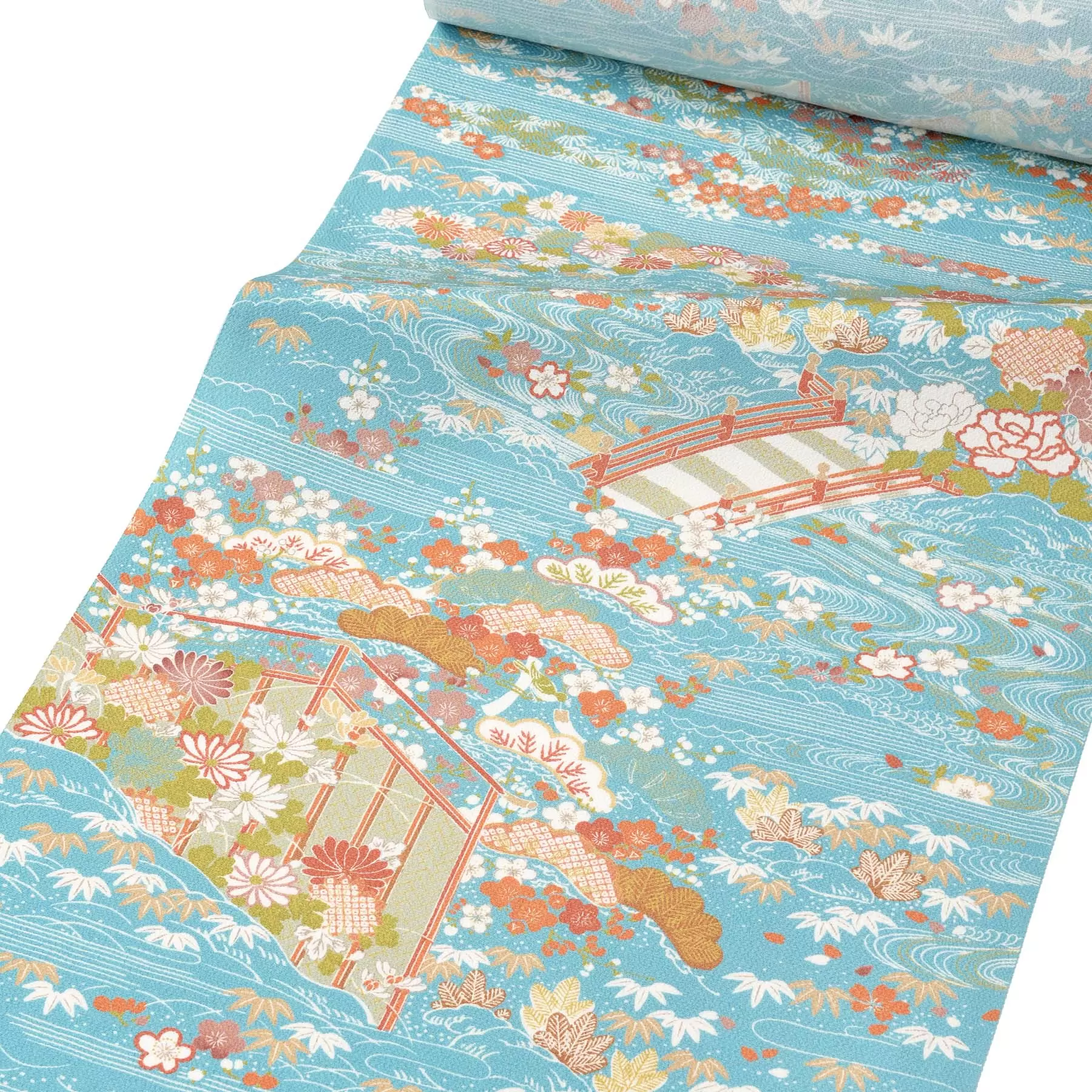 【小紋・友禅着尺】新四季花の丸|ブルー