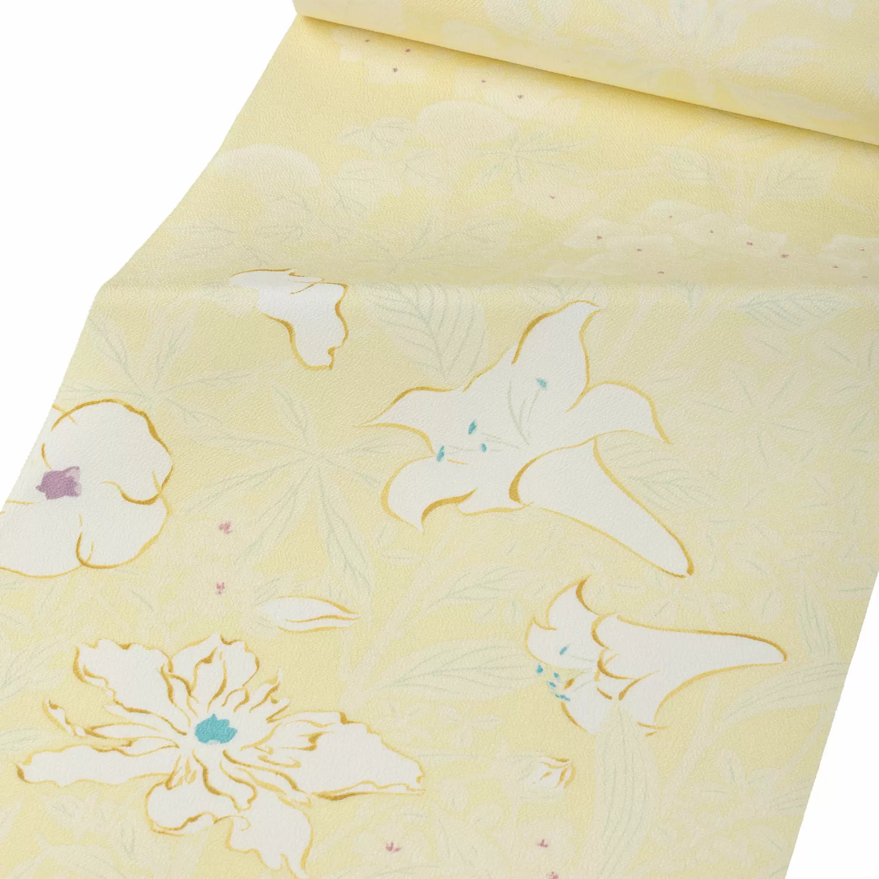 【小紋・友禅着尺】シルエット琳派百花|イエロー