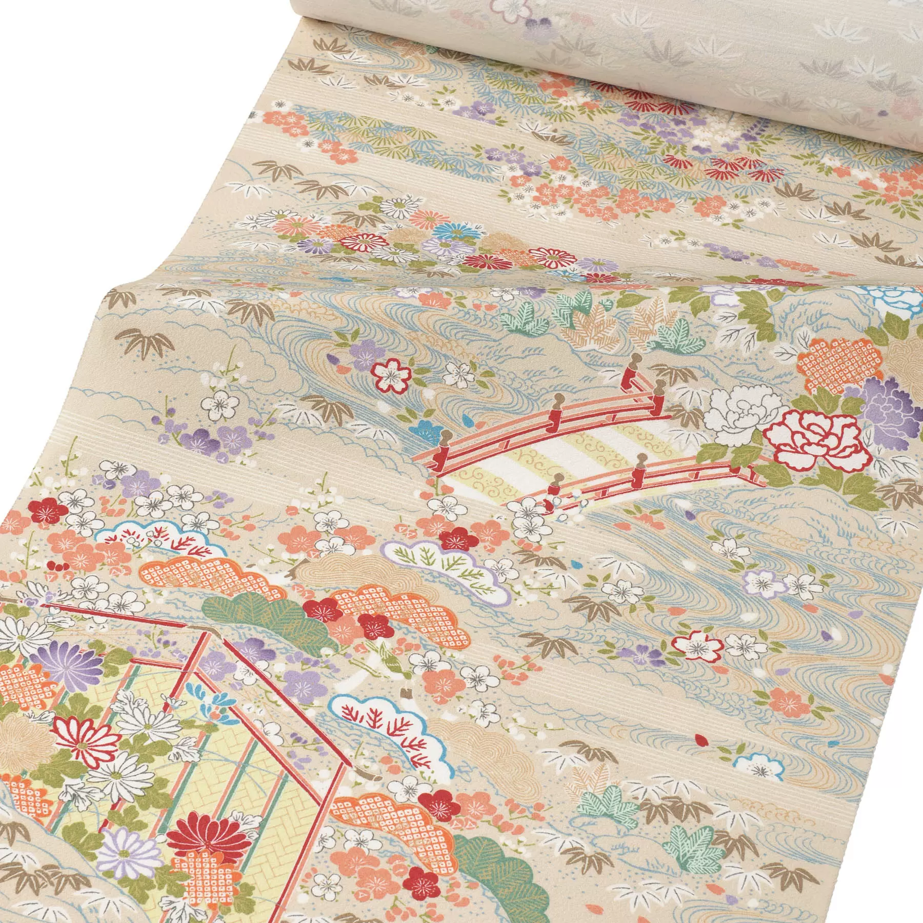 【小紋・友禅着尺】初音御所解|オフホワイト