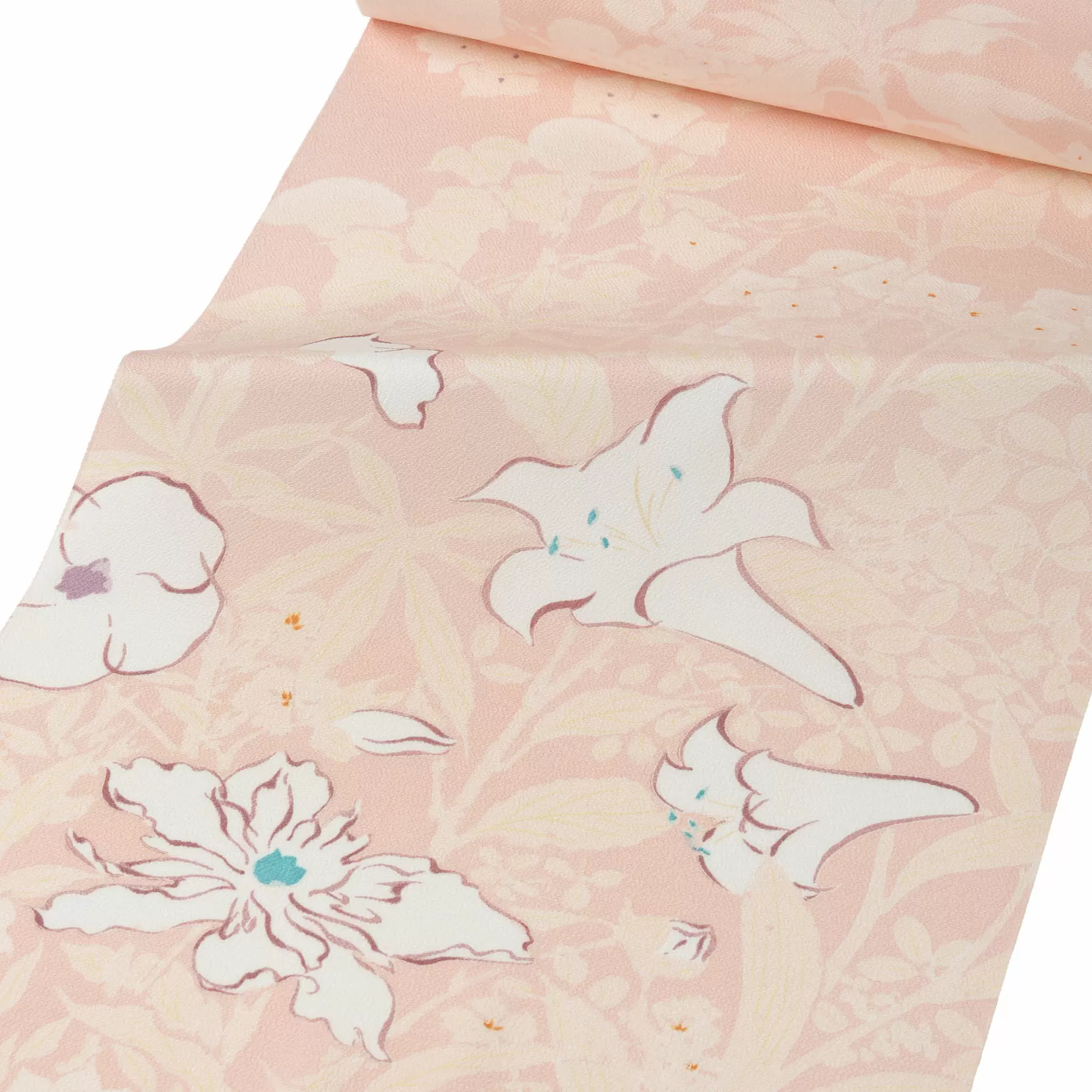 【小紋・友禅着尺】シルエット琳派百花|ピンク