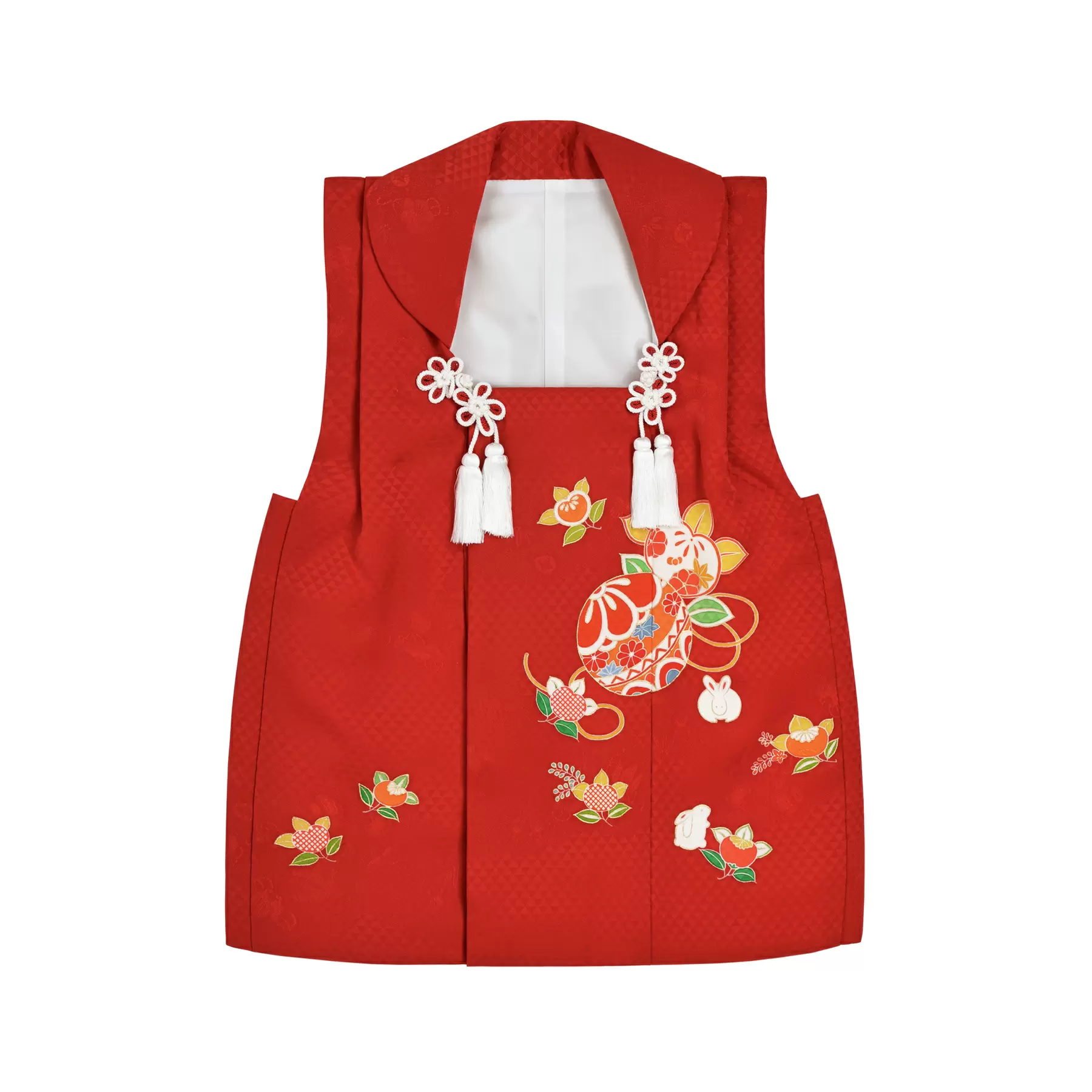 【女の子 三歳 被布】絞り青海波貝桶|レッド