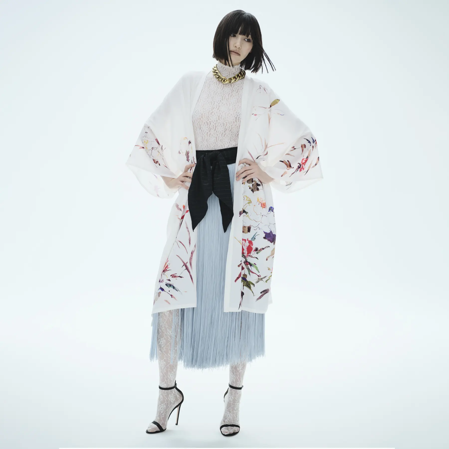 【KIMONO GOWN】花籠|ホワイト